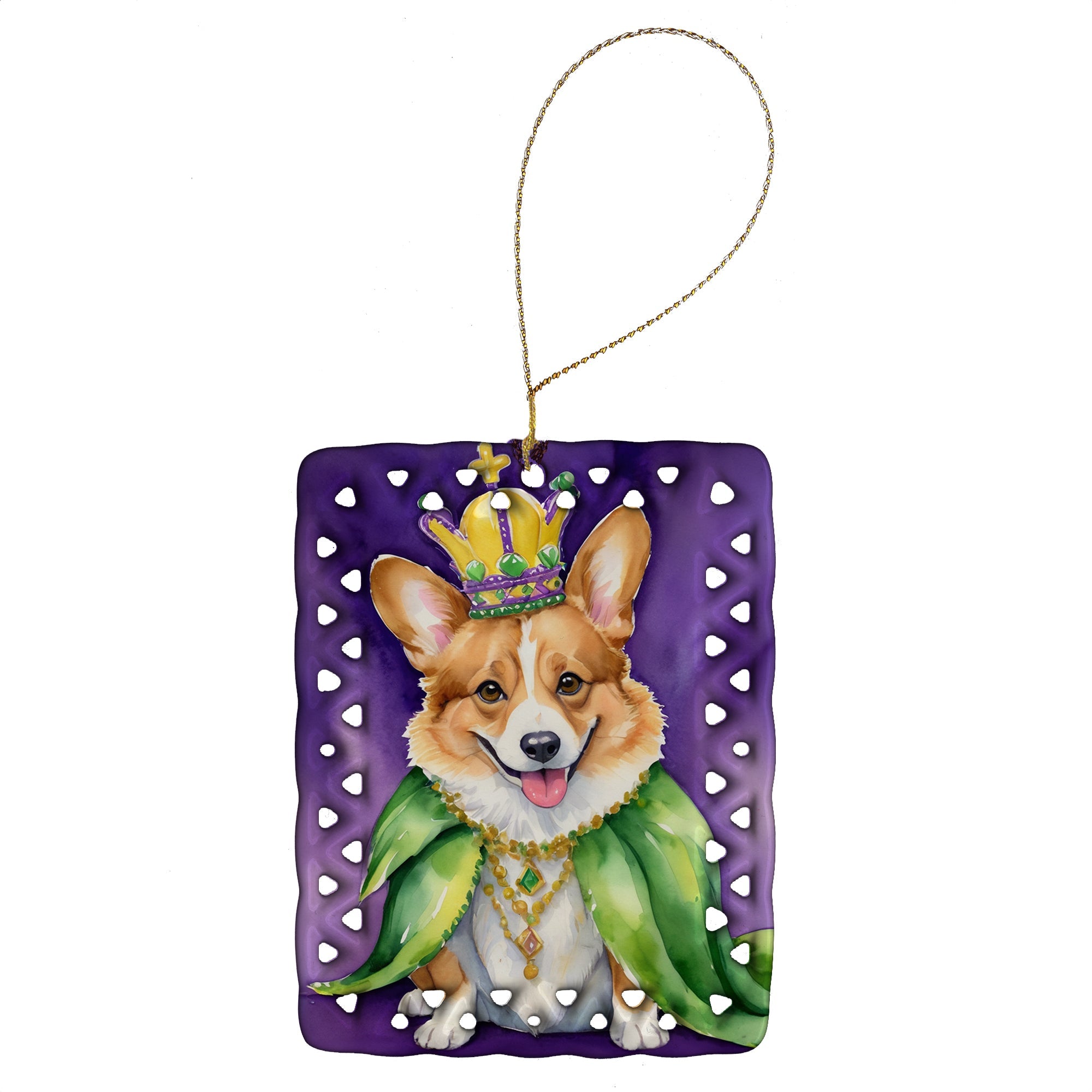 Porcelain Ornament featuring breed specific Corgi artwork. Celebrate Mardi Gras with this Mardi Gras Ornament. Add a unique, personal touch to your holiday decor with our Rectangular Lattice Porcelain Ornament. Perfect for creating cherished memories, this high-quality ornament shines under festive lights, reflecting warmth and joy throughout your Christmas tree. Crafted with a glossy finish, it showcases vibrant, full-color artwork contributed by our talented artists, ensuring your tree is adorned with a burst of color and holiday spirit. What sets this Porcelain Ornament apart is its customizable white back. Use a paint pen or permanent marker to write a heartfelt message, commemorate a special year, or mark an unforgettable date, turning this ornament into a keepsake that will be treasured for years to come. For best results, allow any personalization to dry thoroughly before handling. Each ornament comes complete with a delicate gold cord, making it easy to hang and display. Proudly made in the USA, this ornament measures 3.375 x 2.625 inches and is a thoughtful gift for pet sitters, teachers, family members, or anyone who would appreciate a little extra holiday magic. Bring style, charm, and a touch of personal meaning to your Christmas tree with this beautifully designed ornament..