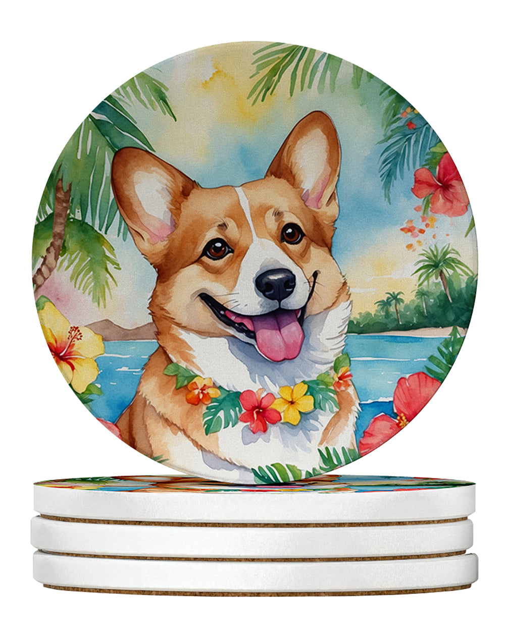 Corgi Luau Large Sandstone Coasters Pack of 4