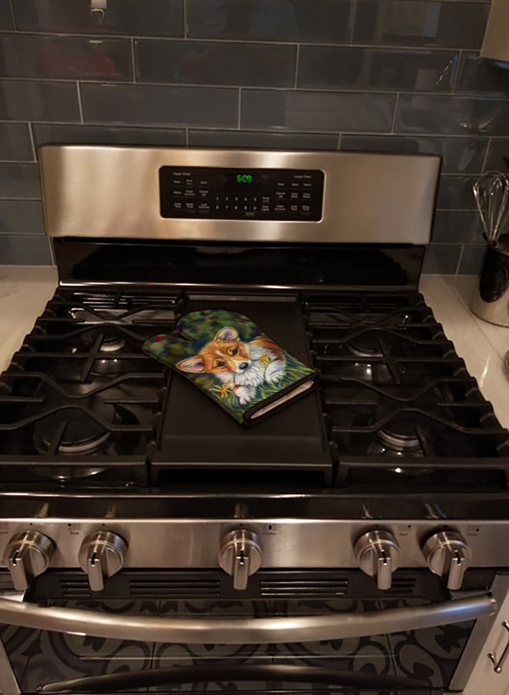 Corgi Pup and Daffodils Oven Mitt 7300OVMT