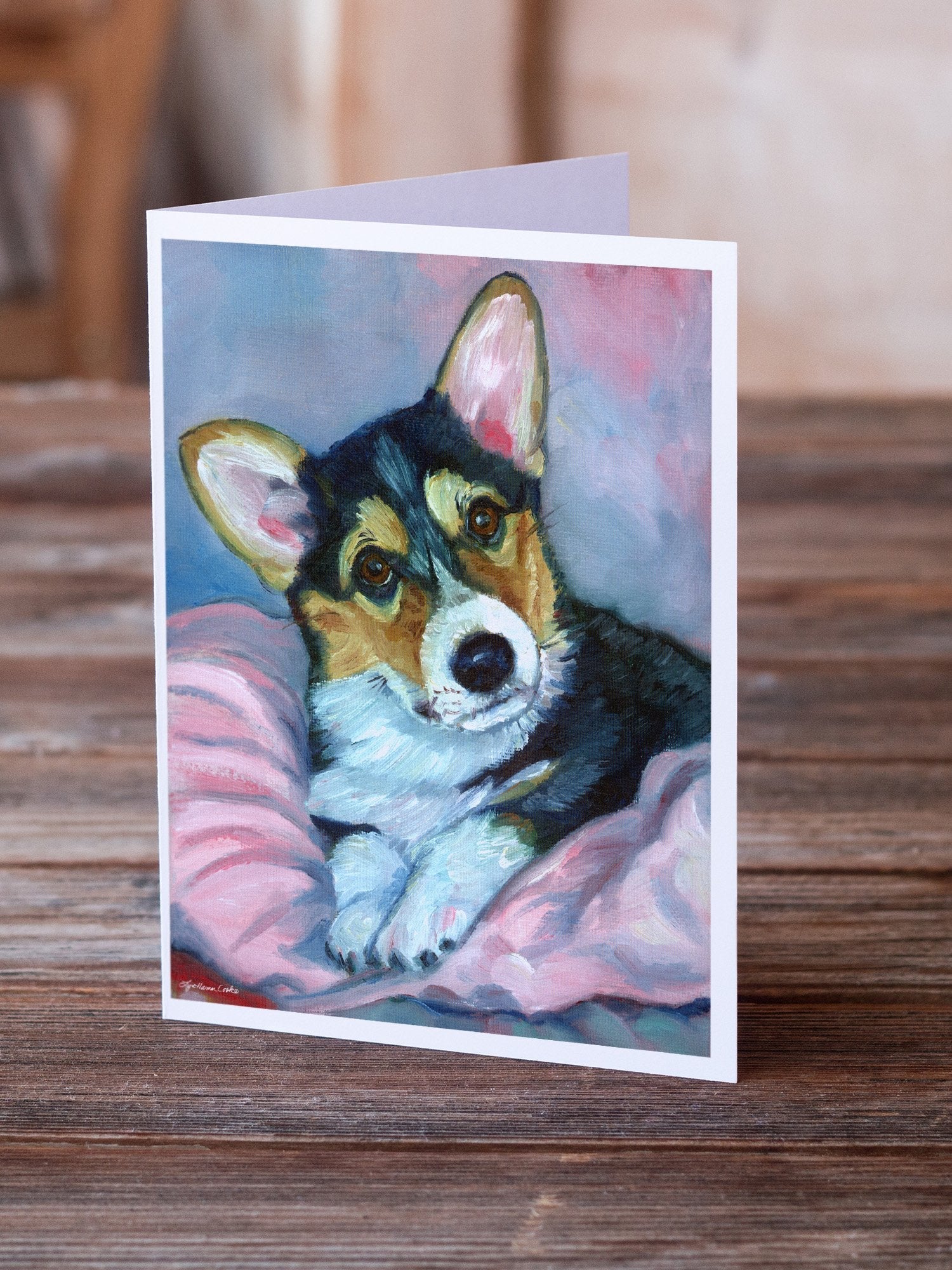 Corgi Puppy with pink blanket Greeting Cards -  Blank Note Cards – 8-Pack of Artist-Designed Cards with Envelopes