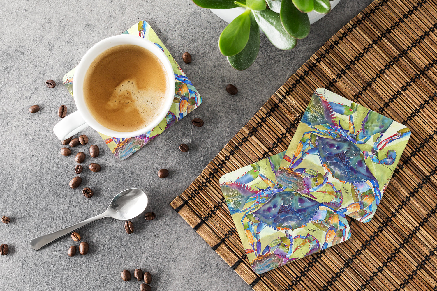 Crab Coasters - Set of 4 Lightweight Foam, Absorbent Drink Coasters
