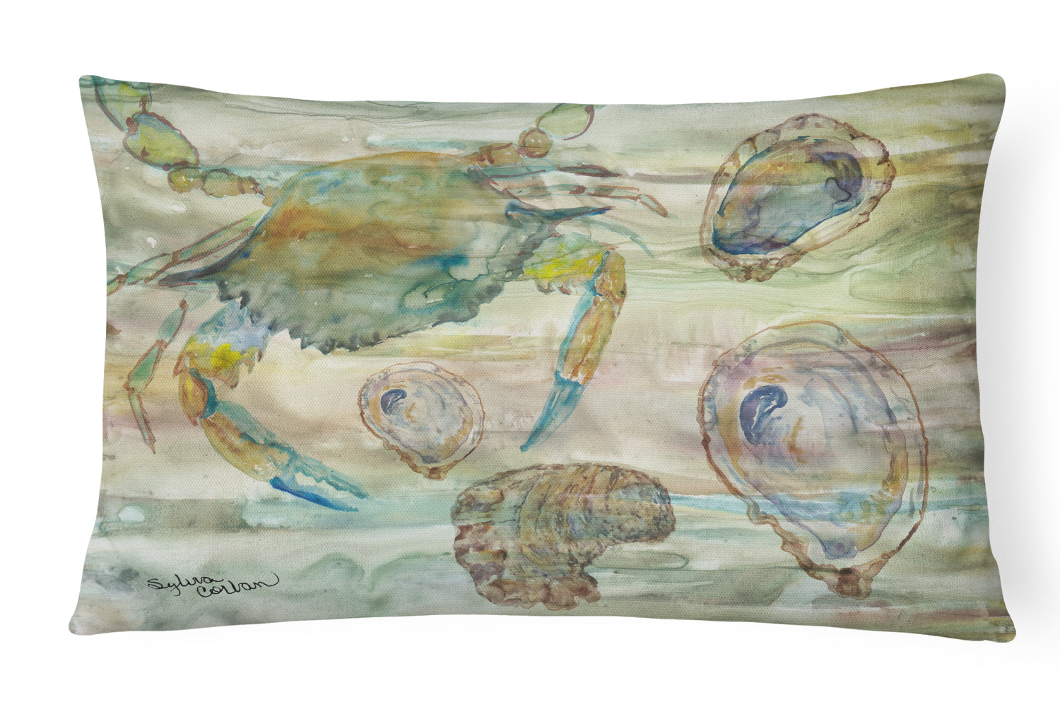 Crab, Shrimp and Oyster Sunset Canvas Fabric Decorative Pillow SC2017PW1216