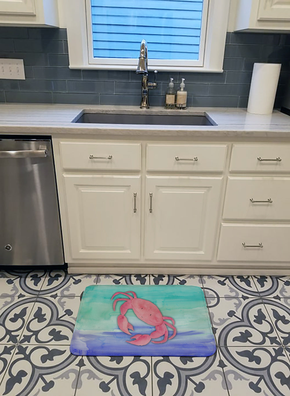 Crab Watercolor Machine Washable Memory Foam Mat BB7420RUG