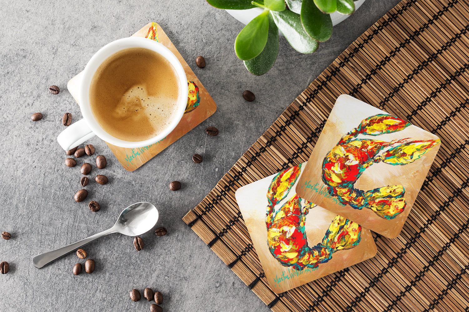 Crawfish Tanya Coasters - Set of 4 Lightweight Foam, Absorbent Drink Coasters