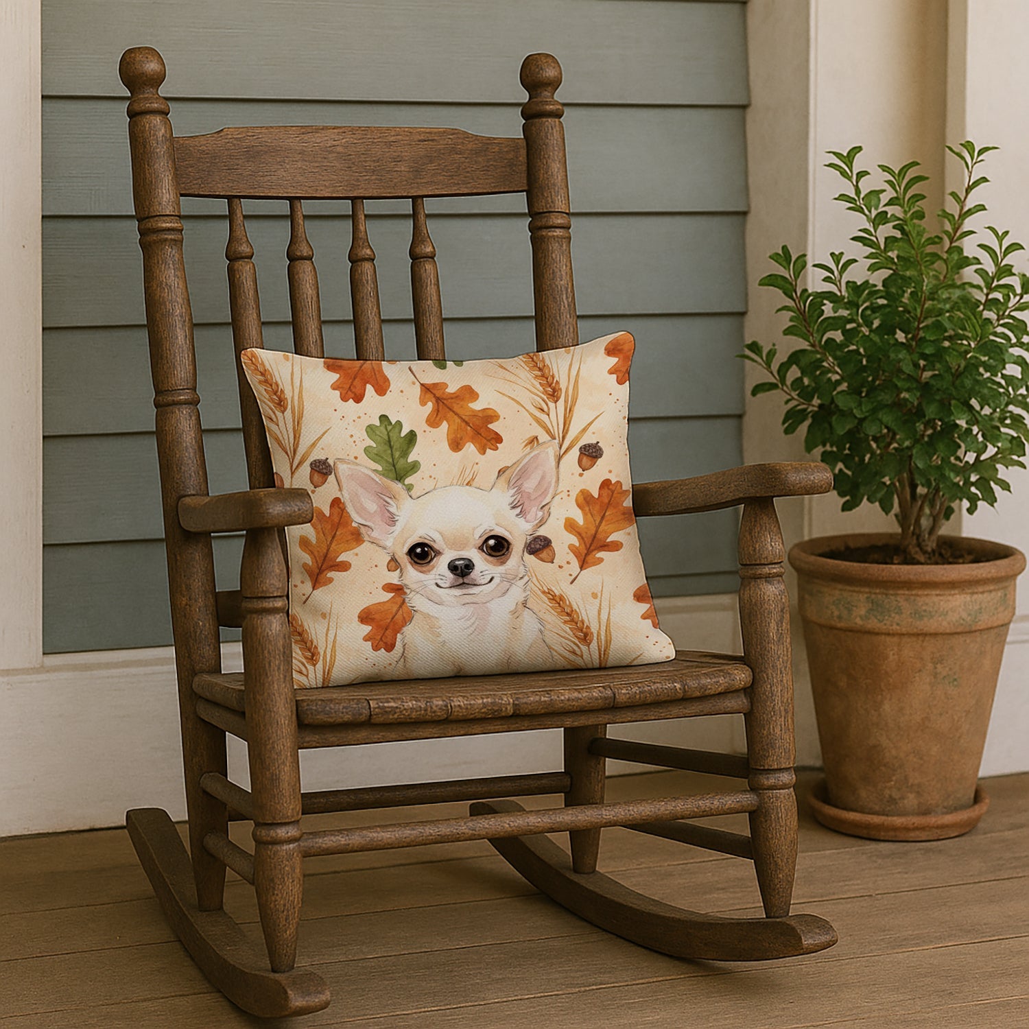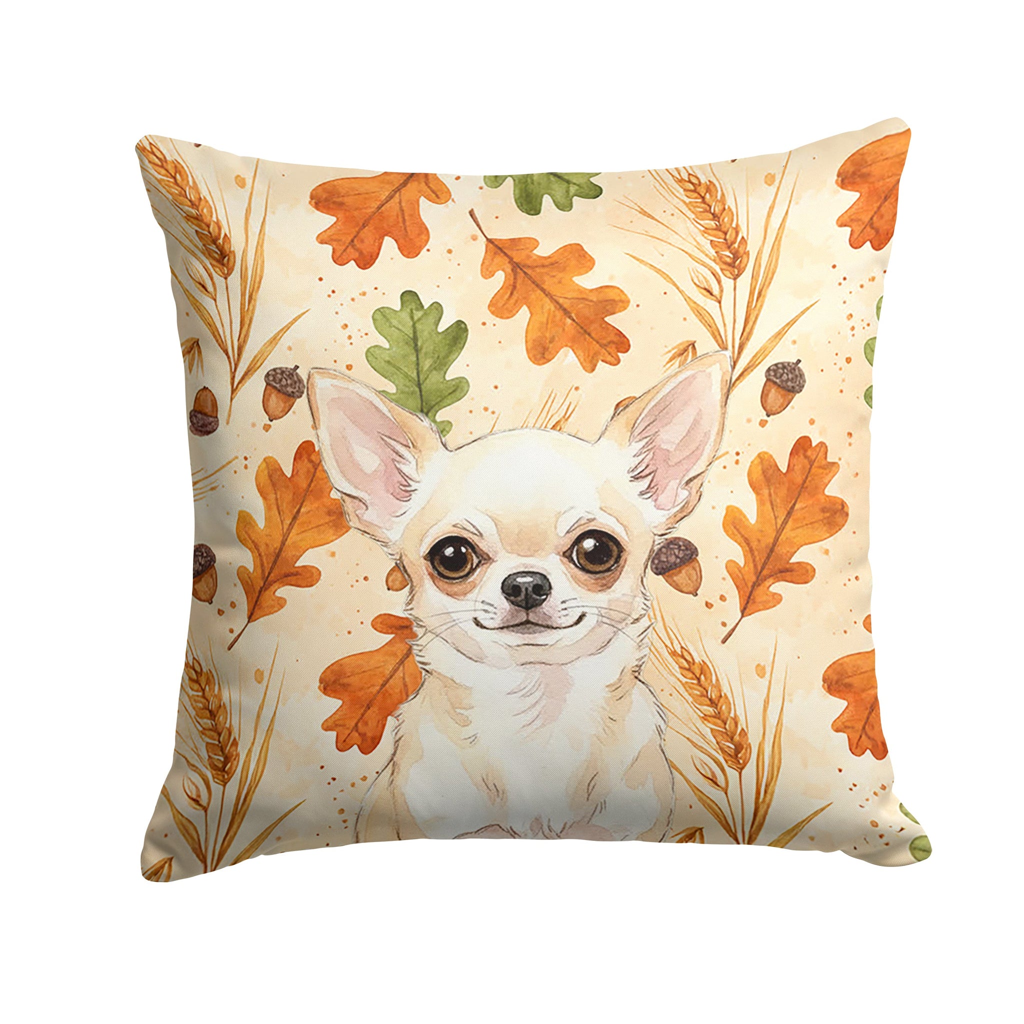 Throw Pillow featuring breed specific Chihuahua artwork. Celebrate Thanksgiving with this Thanksgiving Pillow. Revitalize your outdoor or indoor living space with Caroline's Treasures 18x18 Fabric Decorative Pillow. With a generously sized dimension of approximately 18 inches by 18 inches, this pillow makes a comfortable and aesthetic addition to any seating area. Made from a unique, water-resistant material developed by Caroline's Treasures, the pillow sham is 100% polyester fabric that's durable and ready to weather any condition. Its vibrant, full-color artwork will not fade over time as it is dyed with color-fast dyes. Whether you place it on your patio furniture, porch, veranda, or indoor couch, its soft canvas fabric ensures a cozy experience. The pillow is handcrafted in the United States, featuring a sham created from three pieces of fabric and a polyester insert for enduring shape and overstuffed comfort. Despite being robustly built to endure the outdoors, it is as soft and snug as your favorite indoor cushions. Please note, as all our pillows are handmade, sizes may vary slightly, adding to the charm of this unique decorative item.