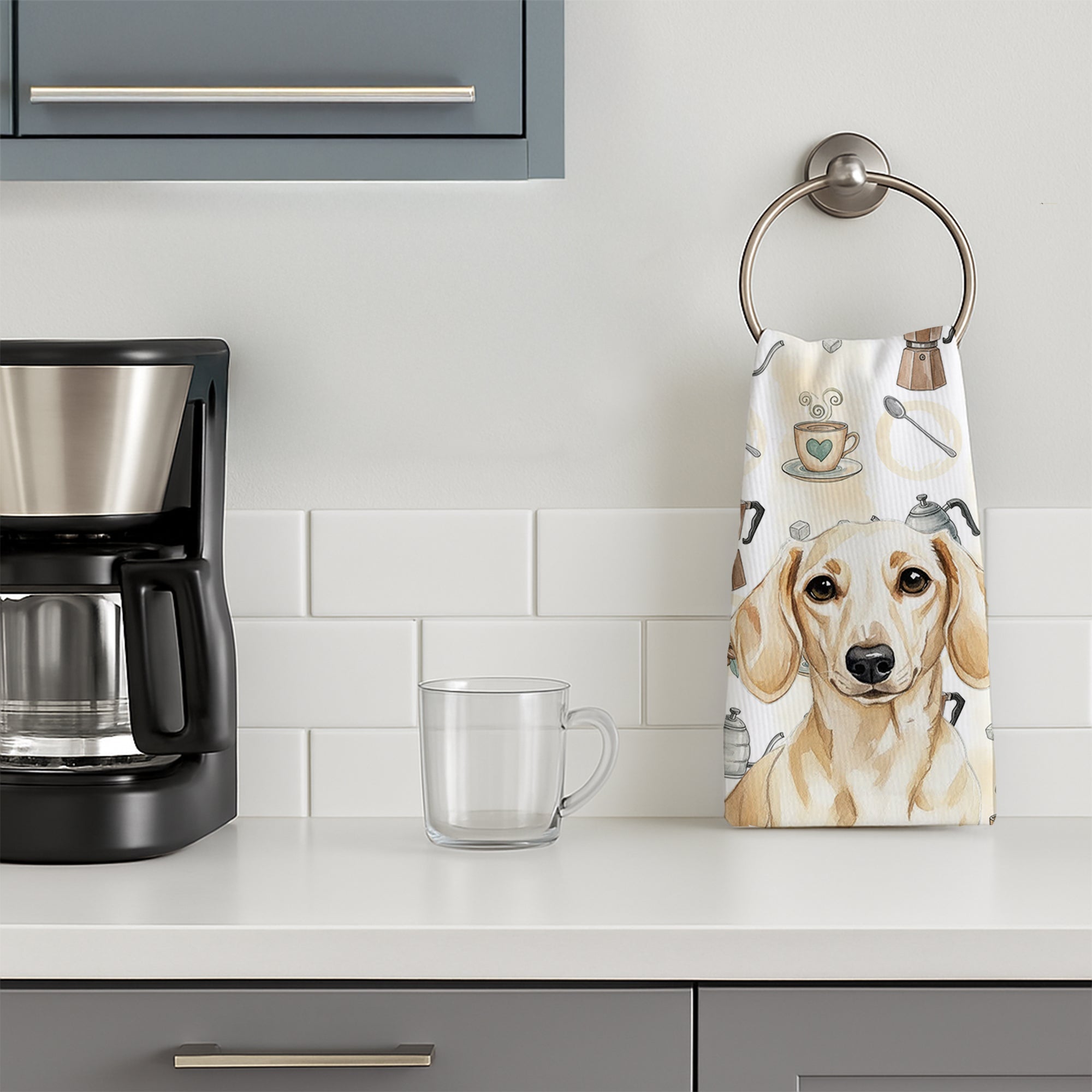 Cream Dachshund Coffee Bar Kitchen Towel