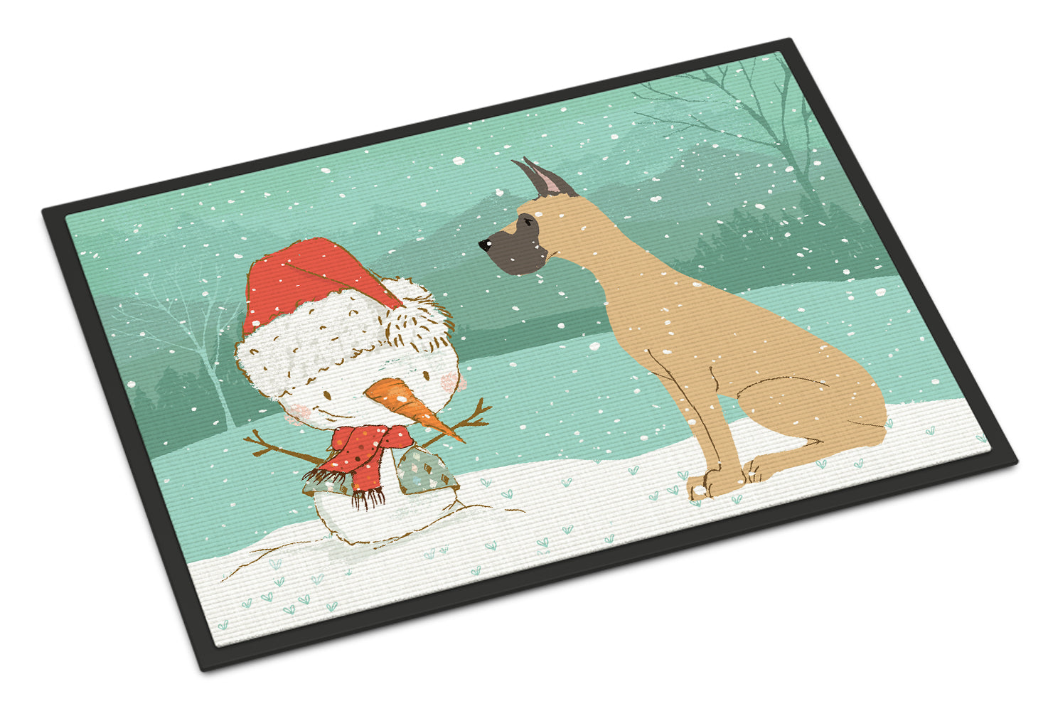 Cropped Fawn Great Dane Snowman Christmas Doormat - 24x36 Decorative Floor Mat – Indoor/Outdoor Rug with Artistic Flair CK2041JMAT