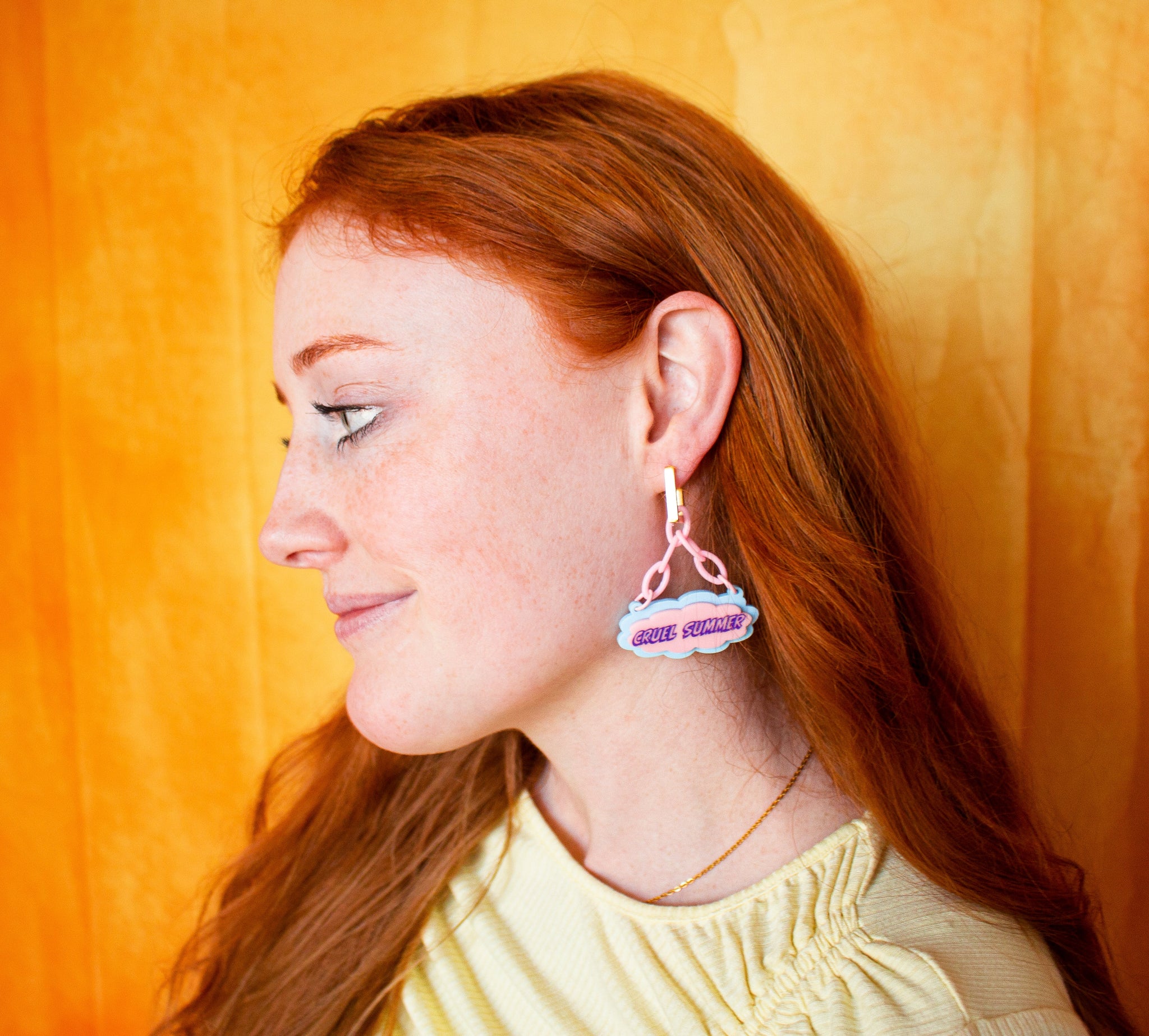 Be summer-ready and show off your Taylor Swift fandom with these super versatile Cruel Summer (2 in 1) earrings. Wear them separately for subtle styling, or pop them together for a simple and chic statement worthy of a music video! Get ready to turn up the heat. 🔥