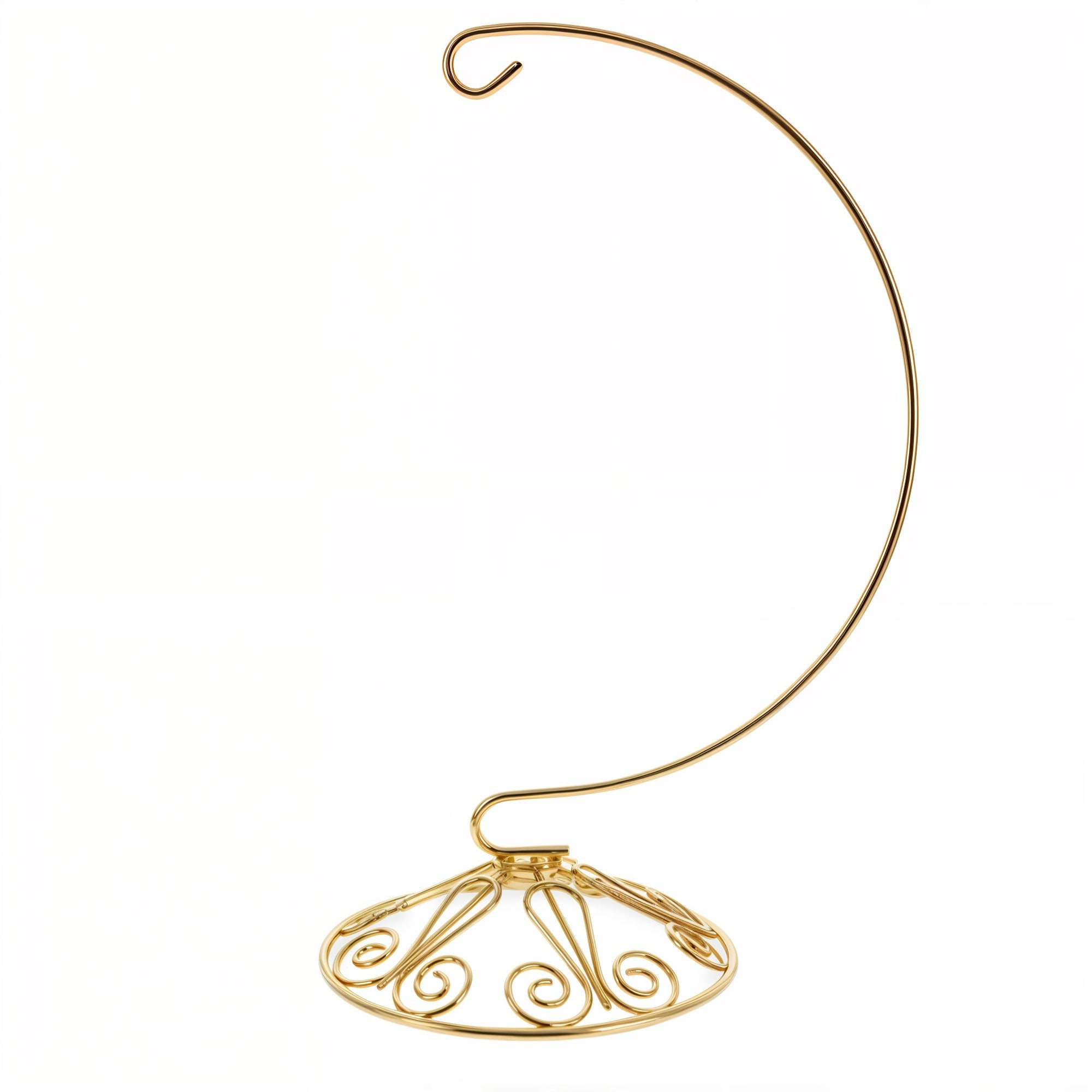 The spiral arm curves gently from top to base, offering a secure hook to hang ornaments while maximizing visibility. Its twisted wire design adds a handcrafted aesthetic, while the stable round base with a decorative curl ensures your ornament stays upright and balanced.