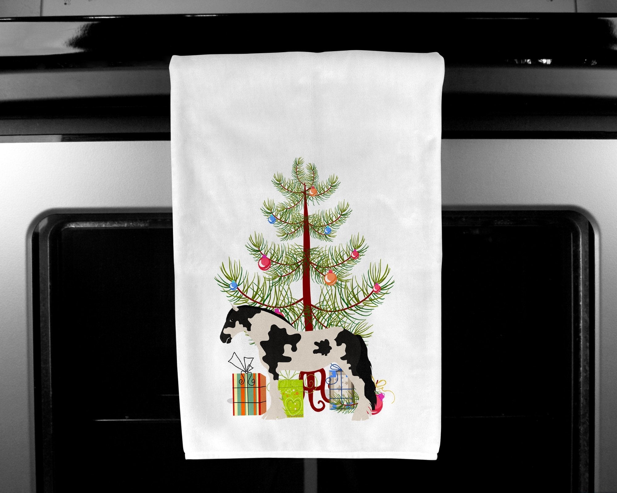 Decorate your space with our Christmas Cyldesdale Horse artwork on a Kitchen Cotton Towels. Spruce up your kitchen decor with Caroline's Treasures Decorative White Kitchen Towel Set. This set of two dish towels showcases beautiful artwork from one of our talented artists, making them both practical and visually appealing. These towels are crafted from 100% cotton, offering excellent absorbency and durability, making them ideal for any kitchen task. Each white towel measures 19 inches by 28 inches, providing ample coverage for drying dishes or wiping up spills. The standout feature of these towels is the full-color artwork design printed on each one. They can serve as a vibrant accent in your kitchen, turning a functional item into a delightful piece of decor. When it comes to care, these towels are machine washable in cold water and can be dried on low heat. Remember to always use a pressing cloth when pressing the design, and avoid using bleach on the decorated towel. The Decorative White Kitchen Towel Set makes a great gift or a stylish addition to your own kitchen.