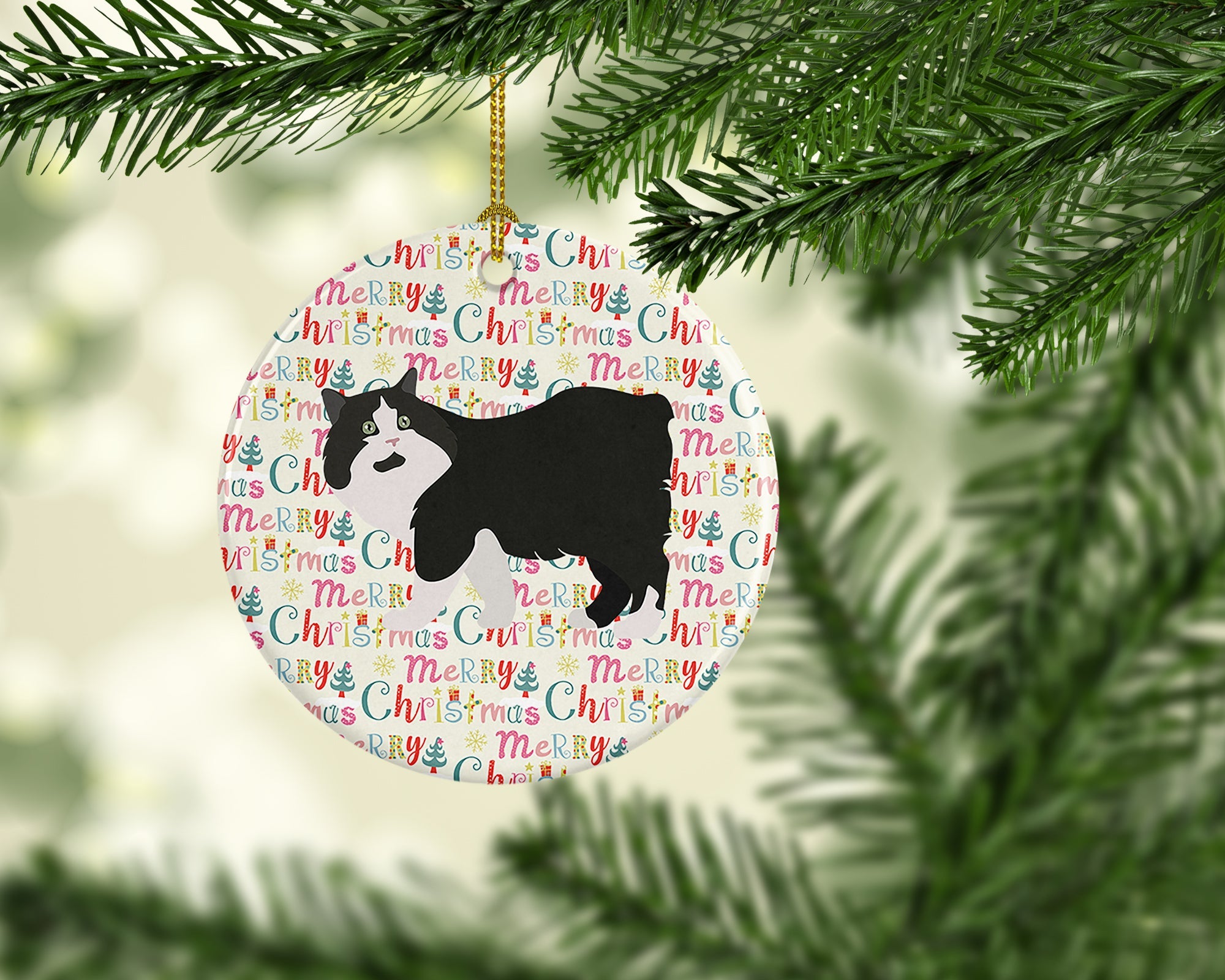 Decorate your space with our Christmas Cymric artwork on a Ornament. Add a touch of personalized charm to your Christmas tree this holiday season with our Ceramic Ornament. Measuring 2.8125 inches in diameter, this round porcelain ornament beautifully reflects your festive lights, enhancing your holiday decor. The gloss surface sets off the vibrant, full-color artwork contributed by one of our talented artists, bringing a pop of color and joy to your tree. This Ceramic Ornament doesn't stop at being merely decorative. The white back is designed for personalization. Write a heartfelt message, mark a special year, or inscribe a date with a paint pen or a permanent marker to create a treasured memento. Please ensure you allow any personalization to dry thoroughly before handling to maintain the pristine finish. Included with the ornament is a delicate gold cord for easy hanging. Made in the USA, this Ceramic Ornament makes an exceptional gift for a pet sitter, teacher, family member, or anyone you wish to share a little Christmas magic with. With its blend of style, charm, and personal touch, it's a meaningful addition to any Christmas tree.