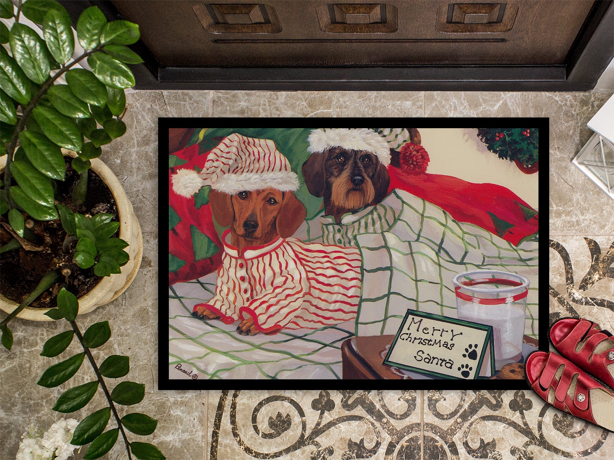 Dachshund Christmas Waiting for Santa Doormat - 18x27 Decorative Floor Mat – Indoor/Outdoor Rug with Artistic Flair PPP3260MAT