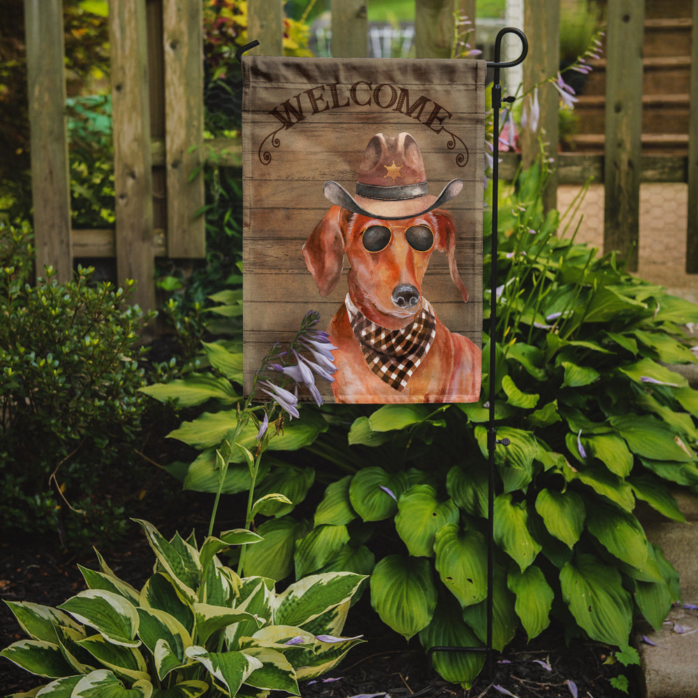 Decorate your space with our Dachshund artwork on a Garden Flag. Enhance the beauty of your garden, patio, or yard with Caroline's Treasures Decorative Garden Flag, proudly made in the USA. Crafted from two pieces of thick, double-sided polyester fabric, this 2-ply garden flag is designed to withstand various weather conditions, making it water-resistant and weatherproof. Featuring correctly readable words on both sides, this garden flag offers a delightful visual experience from any angle. With its heavier weight, it stands out among other garden flags, ensuring stability and durability even in wind, rain, and snow. Measuring approximately 11 1/4 inches by 15 1/2 inches, this flag allows you to personalize your outdoor decor. It comes with a 1 1/2-inch sleeve sewn in, allowing easy attachment to any standard garden flag stand or garden size porch hanger (sold separately). Make a statement in your outdoor space with Caroline's Treasures Decorative Garden Flag, a vibrant and high-quality flag that adds color and personality to your surroundings. Proudly made in the USA, it's a symbol of quality craftsmanship and attention to detail.