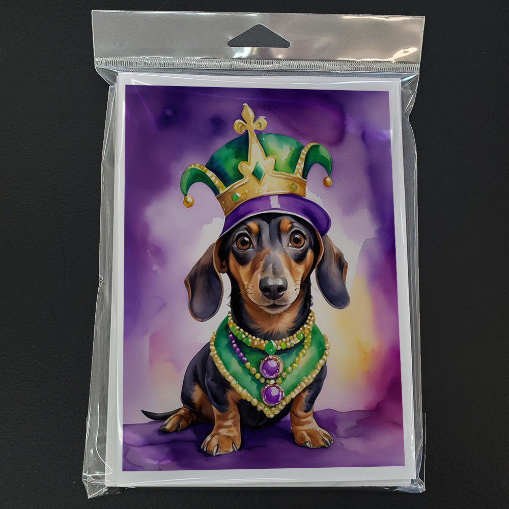 Decorate your space with our Mardi Gras Dachshund artwork on a . Celebrate special moments with Caroline's Treasures Printed Greeting Card Pack. This pack includes eight beautifully folded 5x7 cards, accompanied by eight matching white envelopes. With blank interiors, these cards provide ample space for your personalized messages and heartfelt holiday greetings. Each card features captivating full-color artwork, meticulously printed in our facility on high-quality 80 lb cover stock or 216 GSM. The super smooth finish of the white cards enhances the visual impact of the artwork, creating a truly stunning presentation. Designed by our talented in-house artists or licensed artists, the artwork on these cards showcases their creativity and attention to detail. From vibrant illustrations to captivating designs, each card tells its own unique story. Whether it's for birthdays, anniversaries, holidays, or any special occasion, Caroline's Treasures Greeting Card Pack is the perfect way to convey your heartfelt sentiments. Share joy, love, and warm wishes with these exquisite cards and make every moment unforgettable.