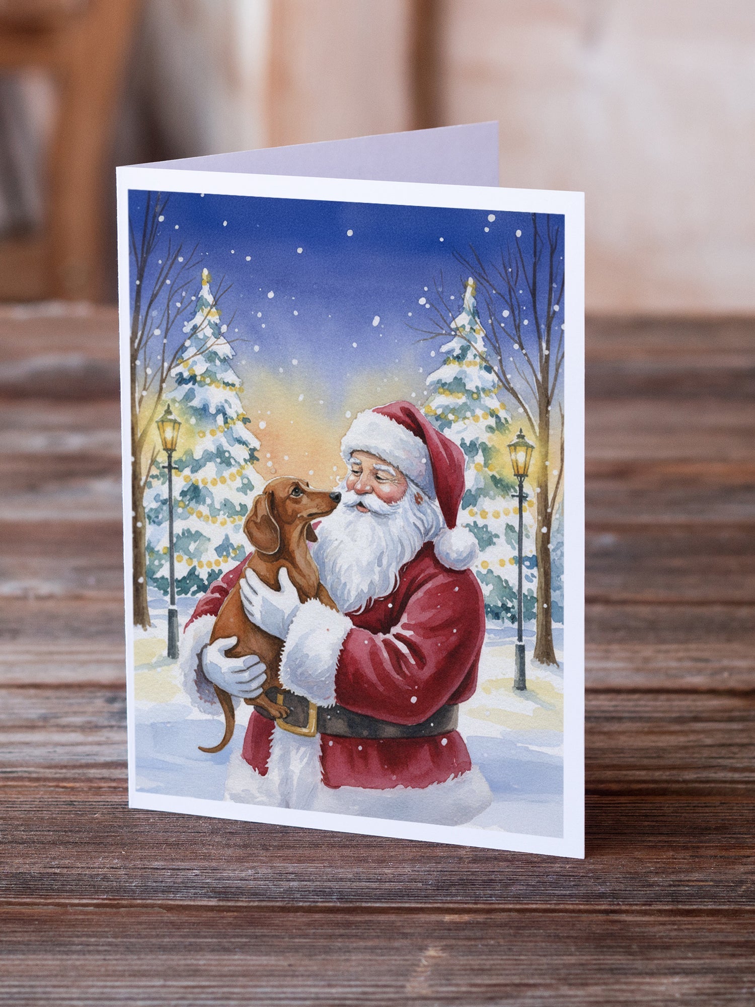 Greeting Cards Pack of 8 featuring breed specific Dachshund artwork. Celebrate Christmas with this Christmas . Celebrate special moments with Caroline's Treasures Printed Greeting Card Pack. This pack includes eight beautifully folded 5x7 cards, accompanied by eight matching white envelopes. With blank interiors, these cards provide ample space for your personalized messages and heartfelt holiday greetings. Each card features captivating full-color artwork, meticulously printed in our facility on high-quality 80 lb cover stock or 216 GSM. The super smooth finish of the white cards enhances the visual impact of the artwork, creating a truly stunning presentation. Designed by our talented in-house artists or licensed artists, the artwork on these cards showcases their creativity and attention to detail. From vibrant illustrations to captivating designs, each card tells its own unique story. Whether it's for birthdays, anniversaries, holidays, or any special occasion, Caroline's Treasures Greeting Card Pack is the perfect way to convey your heartfelt sentiments. Share joy, love, and warm wishes with these exquisite cards and make every moment unforgettable.