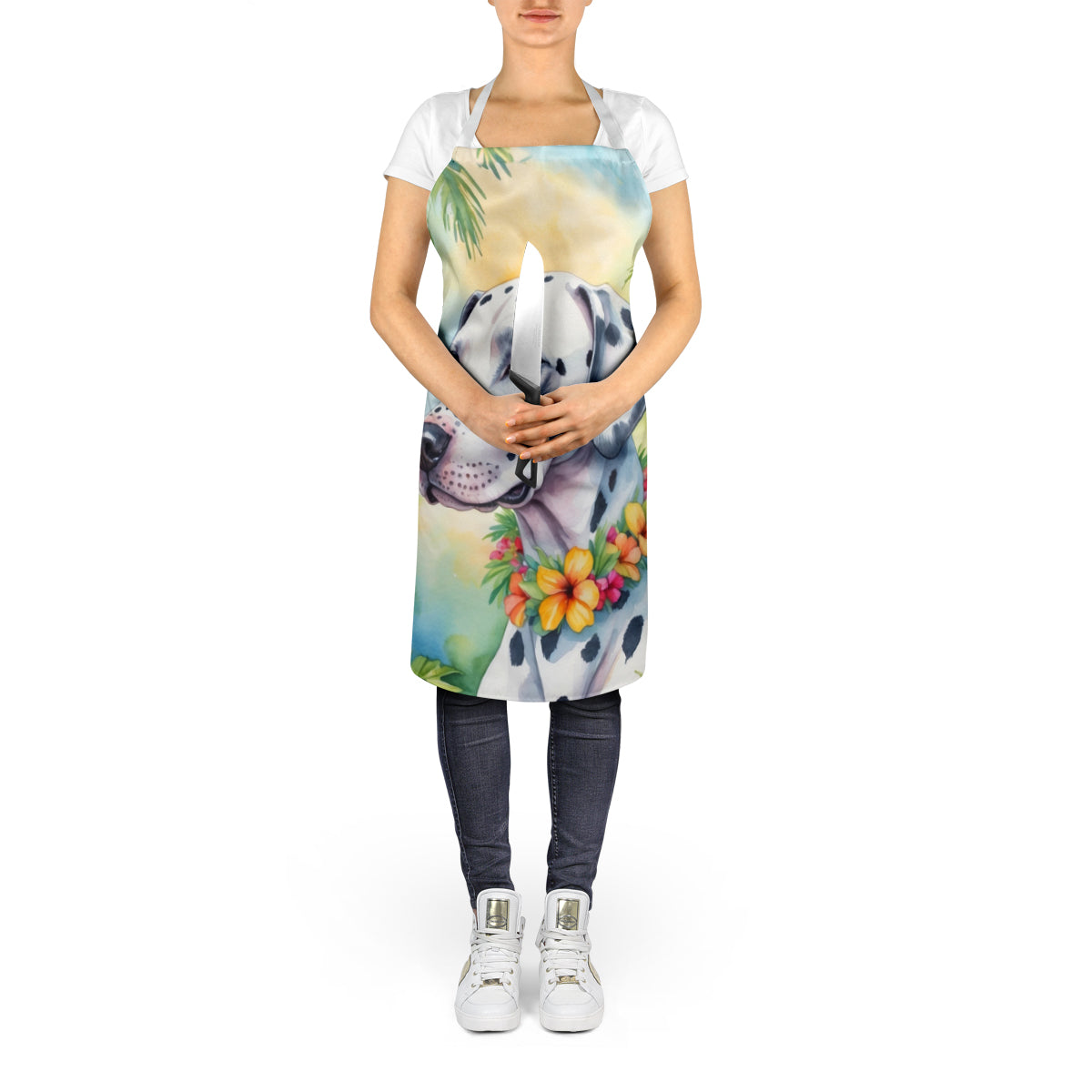 Decorate your space with our Dalmatian artwork on a Apron. Bring a bit of Summer into your home with a Summer Apron. Elevate your cooking, baking, and grilling experiences with our versatile Kitchen or BBQ Apron. This Bib Style apron isn't just limited to culinary activities - it also serves as an excellent baking apron, artist apron, server apron, gardening apron, or even a dog grooming apron. The apron showcases vibrant full-color artwork contributed by one of our talented artists, bringing a dash of style to your daily tasks. With dimensions of approximately 27"W x 30"H, it provides ample coverage to protect your clothing from spills and splashes. Our apron is meticulously crafted from 100% Ultra Spun Polyester, known for its durability and lightweight nature. The apron comes with white tie straps, ensuring a comfortable and adjustable fit for all. It's a perfect choice for kitchen apron enthusiasts, whether you are a woman or a man. Designed for easy maintenance, this apron is fully machine washable. The quick-drying polyester material actively reduces staining, keeping your apron looking fresh and new for longer. Our beautifully designed apron isn't just a functional kitchen accessory - it's a fashion statement in the culinary world!