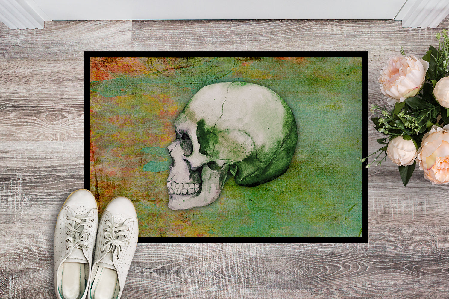 Day of the Dead Green Skull Doormat - 18x27 Decorative Floor Mat – Indoor/Outdoor Rug with Artistic Flair BB5122MAT