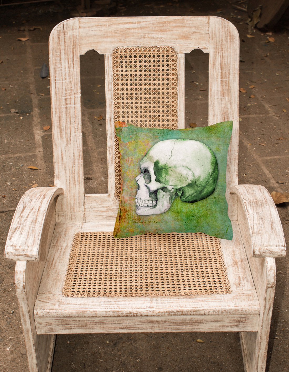 Day of the Dead Green Skull Fabric Decorative Pillow BB5122PW1818