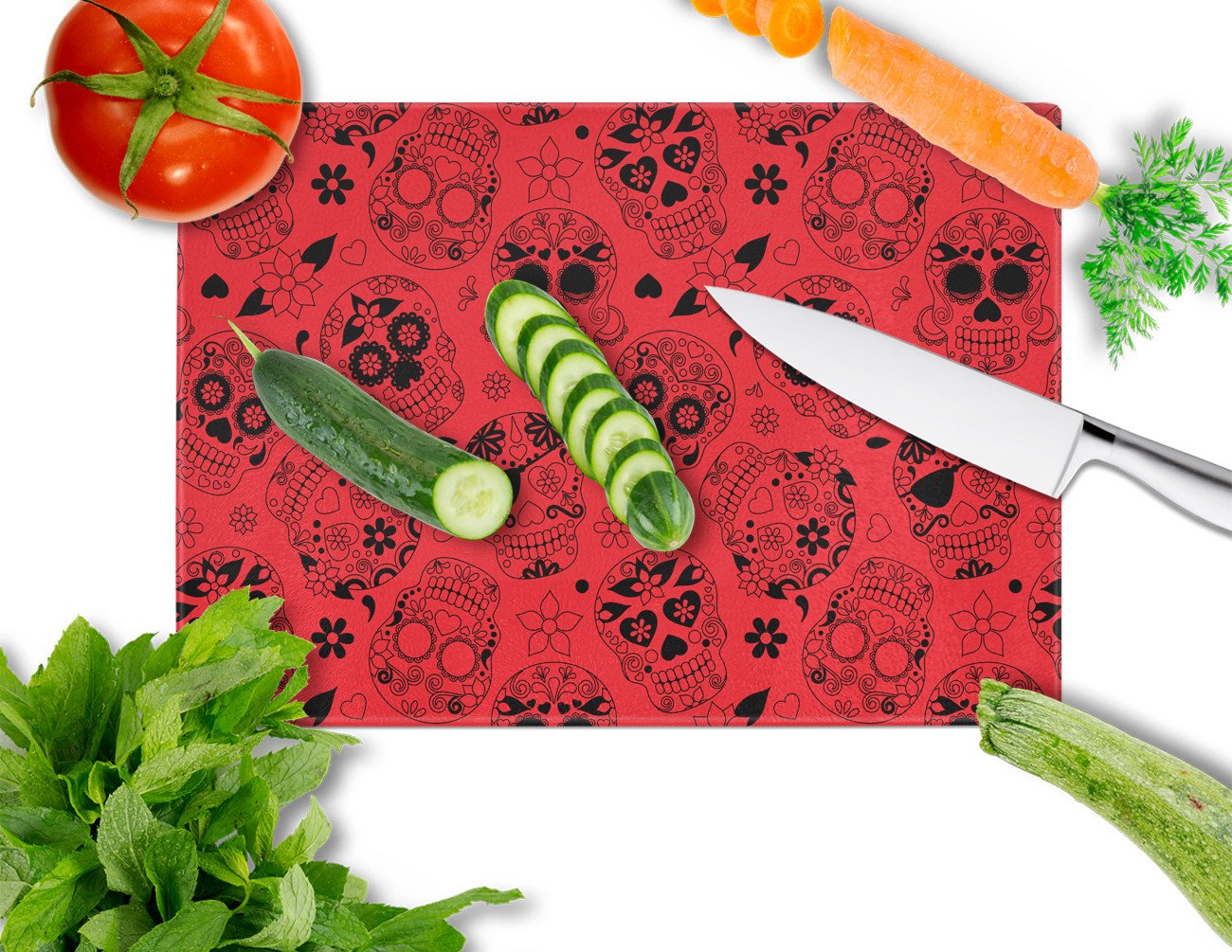 Day of the Dead Orange Glass Cutting Boards – Durable, Decorative Kitchen Art Large BB5119LCB