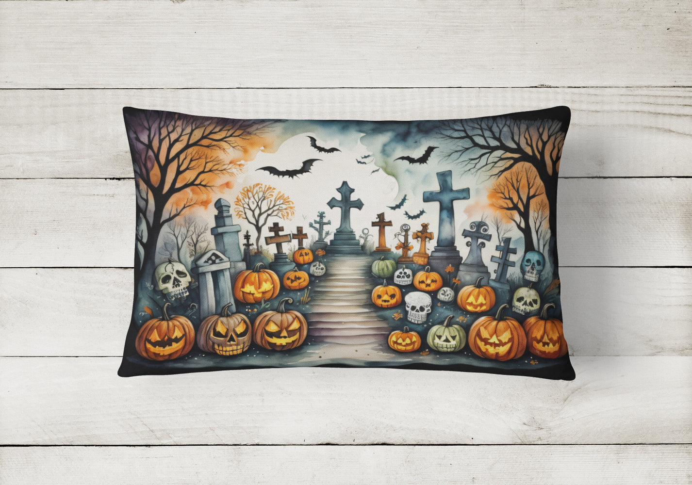 Decorate your space with our Halloween artwork on a Pillow. Embrace the fusion of comfort and style with Caroline's Treasures Fabric Decorative Pillow. This 12x16 inch outdoor pillow is designed to complement your patio furniture, adding a splash of color and artistry to your outdoor setting. Constructed with a 100% Polyester Fabric pillow sham filled with a plush pillow form, this cushion is as comfortable as it is durable. Our outdoor pillow utilizes a novel fabric, meticulously woven for enhanced water resistance. This soft canvas material is equally suited for your indoor couch as well as outdoor settings such as the patio, porch, or veranda. To ensure enduring vibrance, we employ colorfast dyes resistant to fading even when subjected to weather elements. The making of this pillow involves the delicate sewing together of three fabric pieces to create a sham, into which a polyester insert is carefully placed. The result is an overstuffed pillow that tenaciously holds its shape. With both the sham and the pillow insert crafted in the United States, these handmade pillows are a testament to superior local craftsmanship. Note that as these pillows are handmade, sizes may slightly vary, enhancing their unique appeal. Enjoy comfort in style with Caroline's Treasures Fabric Decorative Pillow.