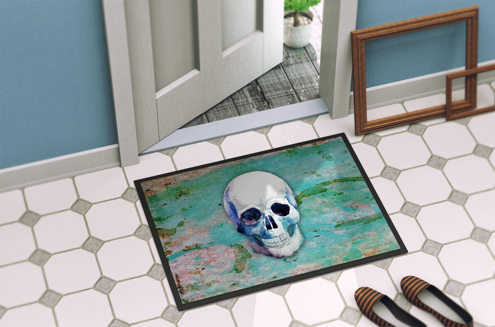 Day of the Dead Teal Skull Doormat - 18x27 Decorative Floor Mat – Indoor/Outdoor Rug with Artistic Flair BB5123MAT