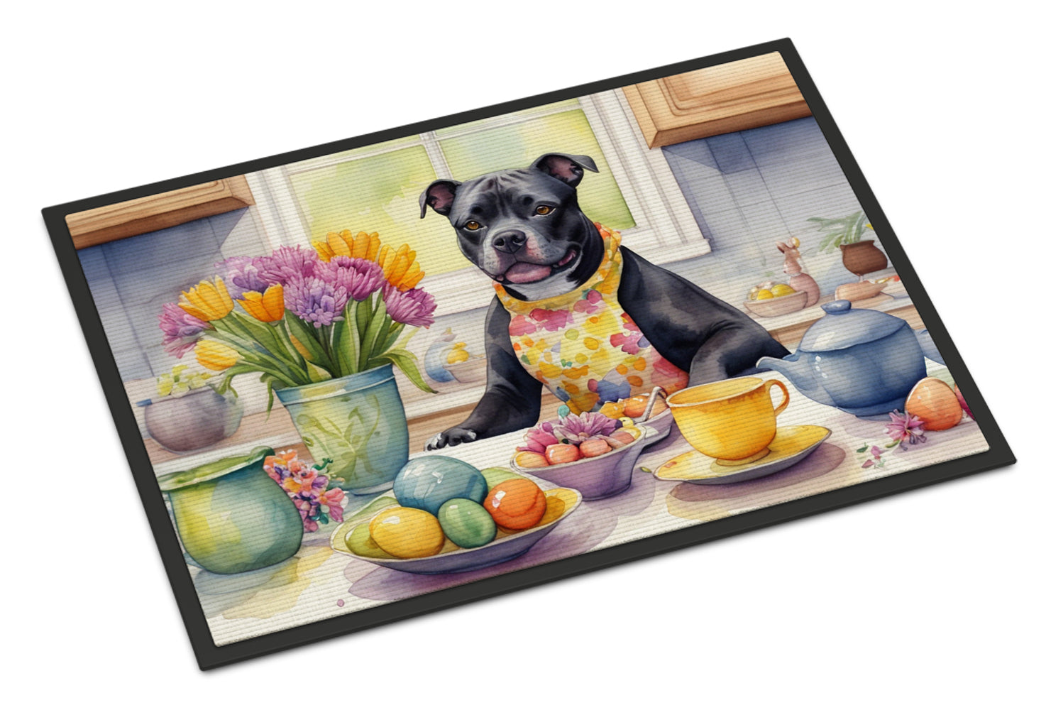 Decorating Easter Staffordshire Bull Terrier Doormat-24x36 Indoor / Outdoor Rug | Made in USA