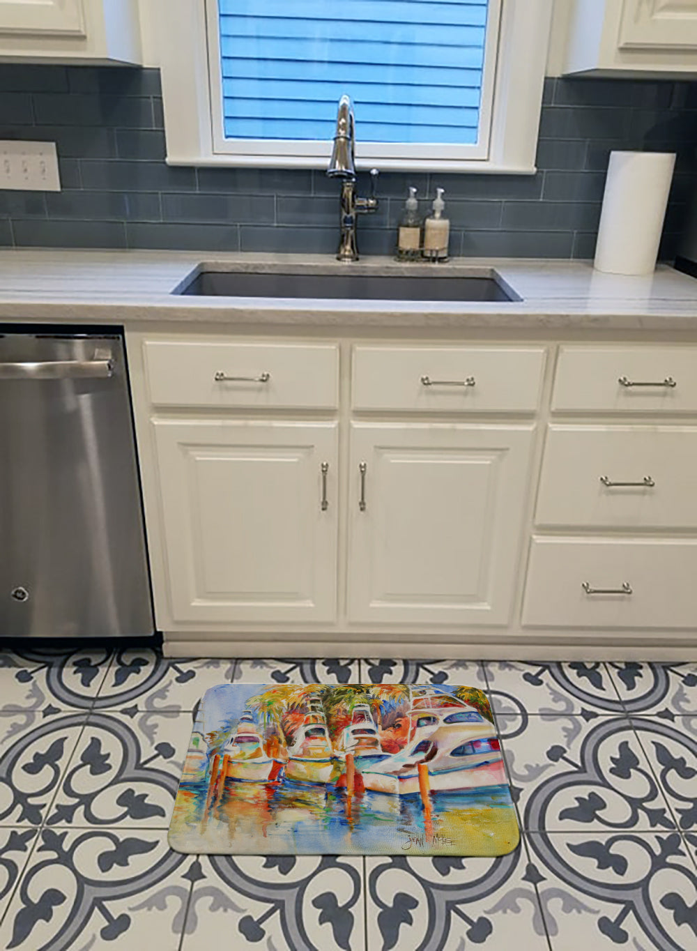 Deep Sea Fishing Boats at the Dock Machine Washable Memory Foam Mat JMK1052RUG