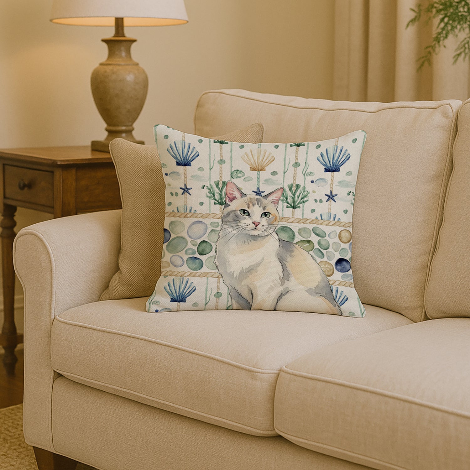Throw Pillow featuring breed specific Dilute Calico artwork. Add a touch of vibrancy and comfort to your outdoor seating with Caroline's Treasures Fabric Decorative Pillow. Measuring approximately 14 inches by 14 inches, this outdoor pillow is crafted to elevate the appeal of your patio furniture, infusing it with vivid color and artistic flair. The pillow includes a 100% Polyester Fabric sham filled with a quality pillow form to provide superior comfort. Innovatively made from our brand new material, specifically woven for its water resistance, this pillow is designed for durability. The soft canvas fabric offers versatility in use, fit for your indoor couch or your outdoor patio, porch, or veranda. The fabric is dyed with colorfast dyes built for resilience against weather conditions, ensuring the pillow retains its beauty over time. Constructed by sewing three fabric pieces to create a sham, the polyester insert is then nestled inside to form the pillow, resulting in an overstuffed pillow that maintains its shape. Both the sham and the pillow insert are proudly made in the United States. As the pillows are handcrafted, there may be minor variations in size, further enhancing their unique charm. Experience comfort in style with Caroline's Treasures Fabric Decorative Pillow.