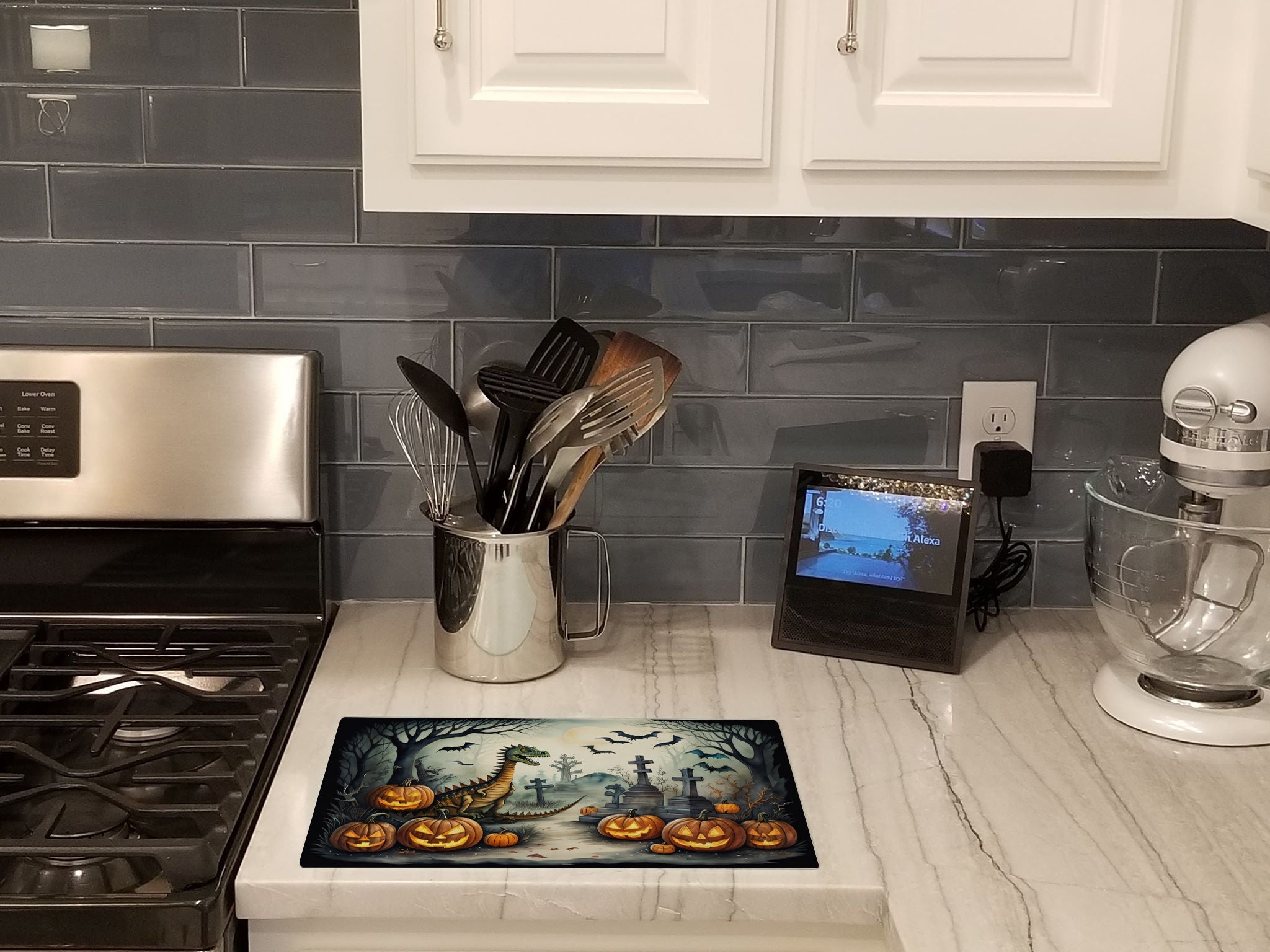 Dinosaurs Spooky Halloween Glass Cutting Boards – Durable, Decorative Kitchen Art Large