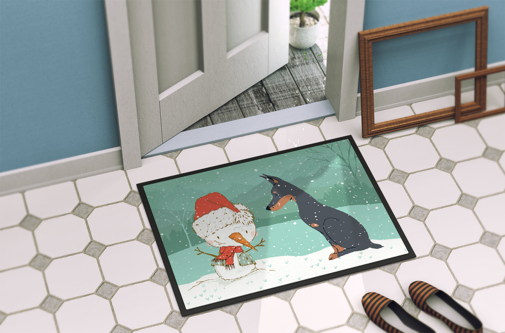 Doberman and Snowman Christmas Doormat - 18x27 Decorative Floor Mat – Indoor/Outdoor Rug with Artistic Flair CK2038MAT