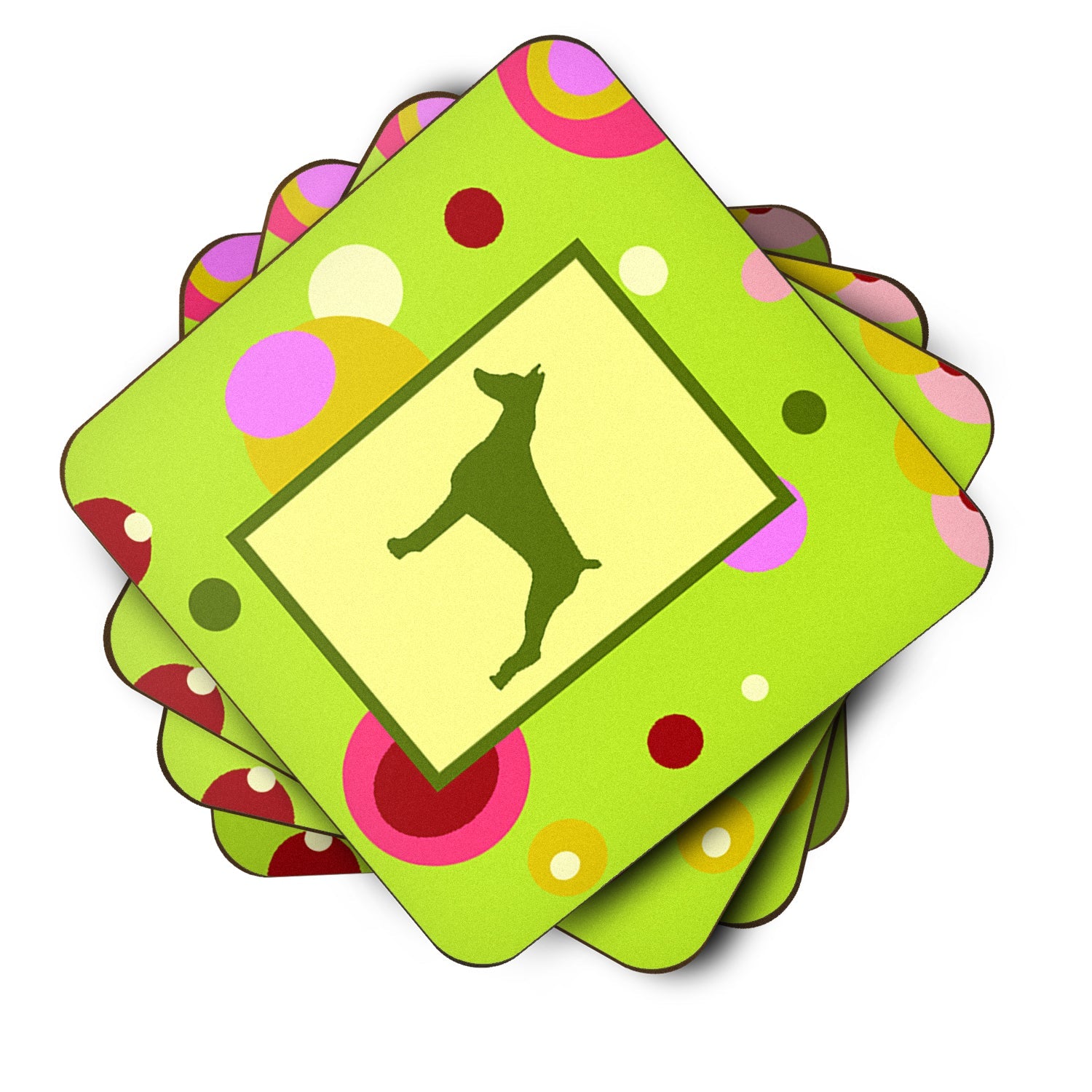 Decorate your space with our Doberman Pinscher artwork on a Coaster set. Presenting our Set of 4 Foam Coasters, a stylish and practical addition to your table setting. Each square coaster, measuring 3 1/2 inches by 3 1/2 inches, is perfectly sized to accommodate various drinkware, from coffee mugs to tumblers. These coasters stand out with their full-color artwork, permanently dyed onto the material for a vibrant and fade-resistant finish. They're not just functional, they're a fashionable statement, adding a touch of flair to any gathering or event. Our foam coasters serve a dual purpose - they protect your table from water stains and are perfect for both hot and cold drinks. The material used is similar to that of our high-quality mouse pads, ensuring durability and heat resistance. These coasters are easy to maintain - simply wash them in the top of your dishwasher and lay flat to dry. The design won't come off, ensuring they retain their vivid colors for years. Pair them with one of our insulated coolers or huggers for a cohesive, thoughtful gift set. Enhance your beverage experience with our Set of 4 Foam Coasters.