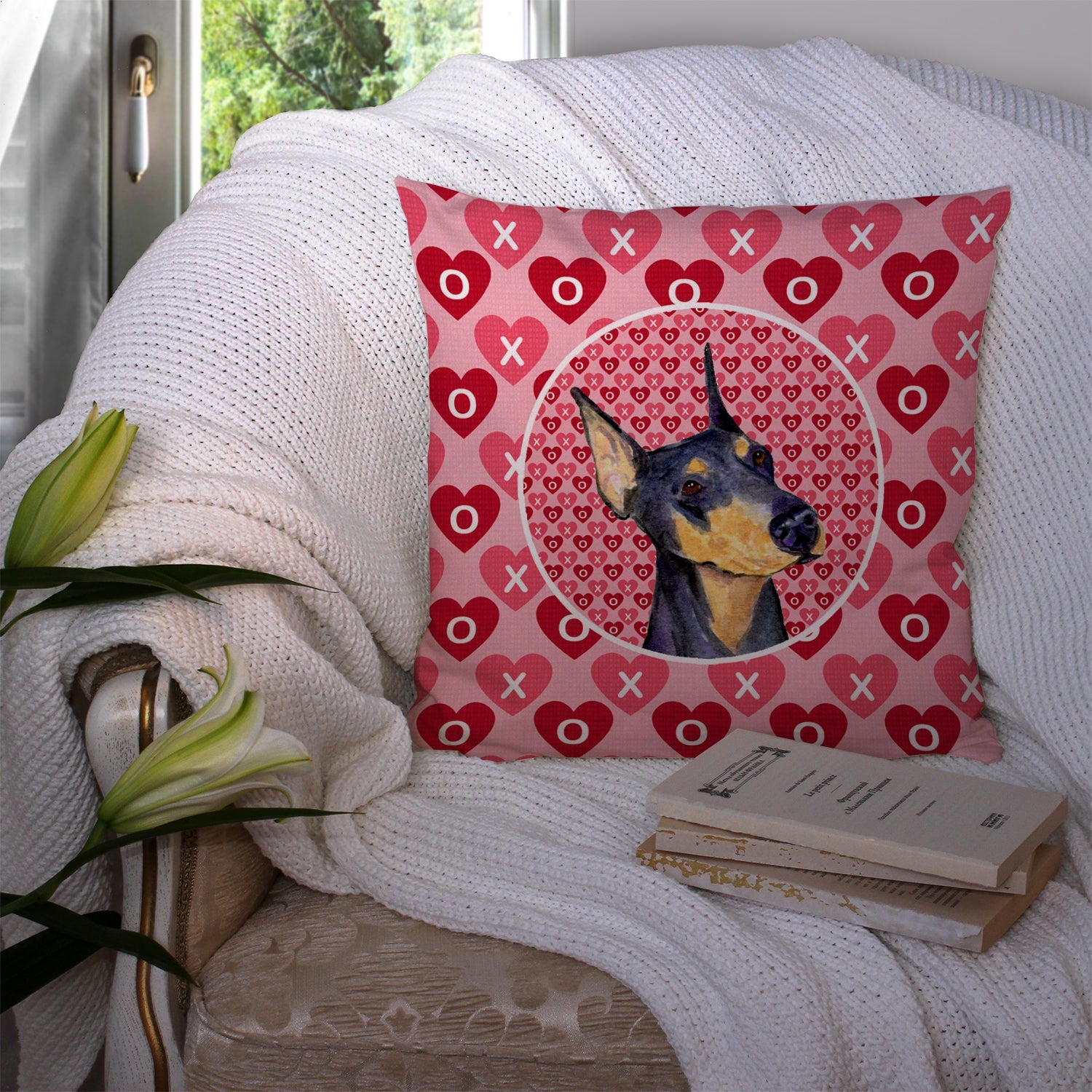 Doberman Hearts Love and Valentine's Day Portrait Throw Pillow - 14x14 Decorative Pillow – Art for Your Home & Patio SS4495PW1414
