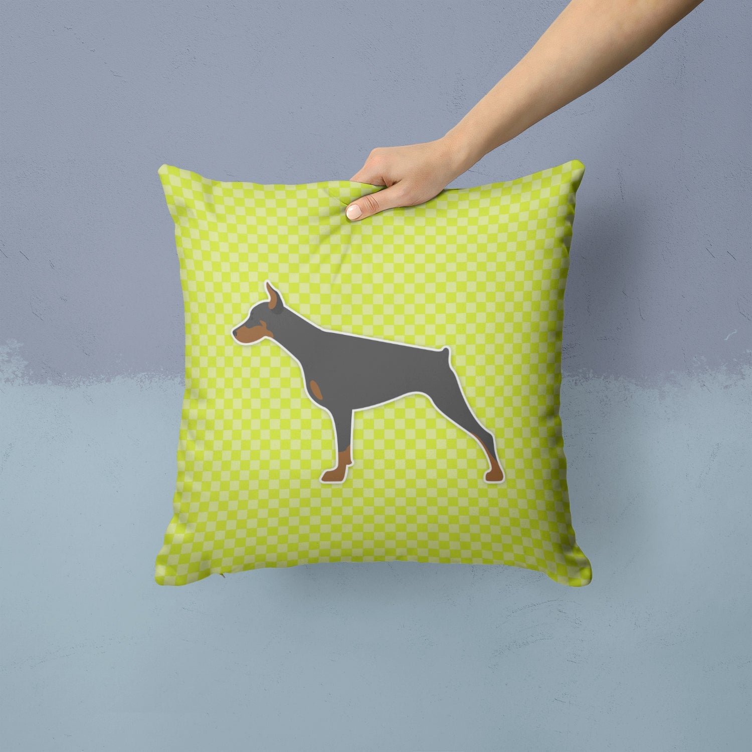 Doberman Pinscher Checkerboard Green Throw Pillow - 14x14 Decorative Pillow – Art for Your Home & Patio BB3860PW1414
