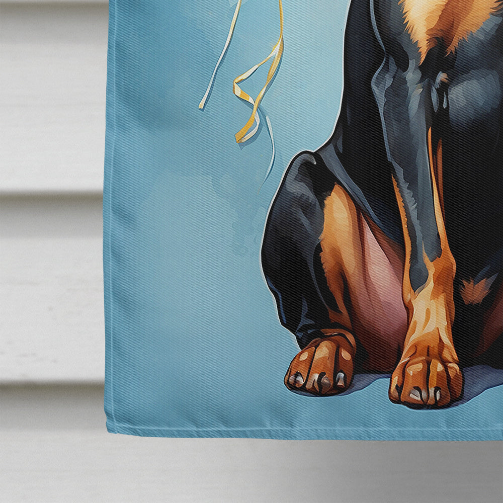 House Flag featuring breed specific Doberman Pinscher artwork. Celebrate Birthday with this Birthday Large Flag. Presenting our Heavy Duty Polyester House Size Decorative Sleeve Pole Flag, a vibrant addition to enhance the aesthetic appeal of your home. This large decorative flag, measuring approximately 28 x 40 inches, offers ample coverage and visibility. Each flag is meticulously sewn and made individually, ensuring a unique piece that may slightly vary in size. It's a sleeve pole flag, designed to fit a standard decorative flag pole effortlessly. Please note that the flag pole and bracket are not included and should be purchased separately. What sets our flag apart is its dual-sided print. The design is mirrored on both sides of the fabric, allowing for uniform visibility regardless of the angle. Printed in full color, our flag showcases vibrant hues that truly stand out. To ensure lasting vibrancy and durability, the dyes are heat-set into the fabric. This ensures your flag remains bright and captivating through various weather conditions. Elevate the look of your home with our Heavy Duty Polyester House Size Decorative Sleeve Pole Flag!