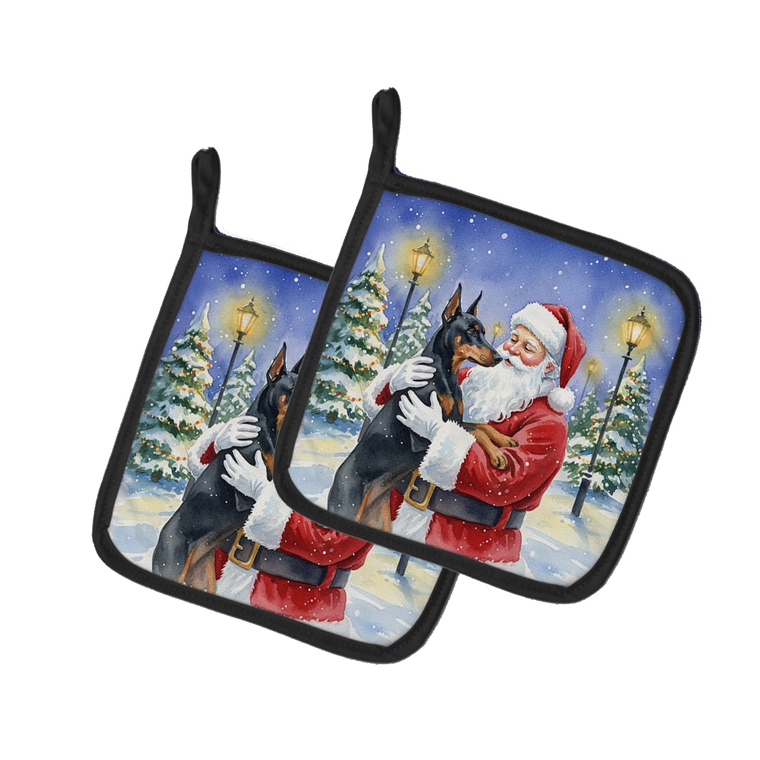 Pair of Pot Holders featuring breed specific Doberman Pinscher artwork. Celebrate Christmas with this Christmas Pair of Pot Holders. Add warmth, personality, and function to your kitchen with our Vegetables Pot Holder Pair. Each set includes two quilted hot pads, featuring original full-color watercolor artwork on a soft polyester front accented by black trim. Crafted with multiple layers for performance: Top Layer: Vibrant artwork permanently dyed into polyester fabric. Middle Layer: US-manufactured insulated material with breathable polyester fibers and a reflective metalized film that reflects heat back to its source. Bottom Layer: A silver heat-resistant backing for extra protection. Each pot holder measures 7.5" x 7.5", includes a hanging tab, and is quilted for durability. Use them to protect your hands, countertops, and tabletops — or as decorative trivets for Thanksgiving, Christmas, or everyday meals.