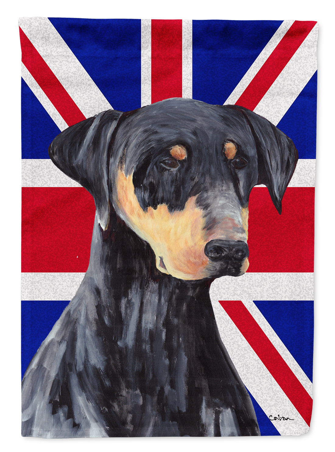 Decorate your space with our Doberman Pinscher artwork on a Garden Flag. Enhance the beauty of your garden, patio, or yard with Caroline's Treasures Decorative Garden Flag, proudly made in the USA. Crafted from two pieces of thick, double-sided polyester fabric, this 2-ply garden flag is designed to withstand various weather conditions, making it water-resistant and weatherproof. Featuring correctly readable words on both sides, this garden flag offers a delightful visual experience from any angle. With its heavier weight, it stands out among other garden flags, ensuring stability and durability even in wind, rain, and snow. Measuring approximately 11 1/4 inches by 15 1/2 inches, this flag allows you to personalize your outdoor decor. It comes with a 1 1/2-inch sleeve sewn in, allowing easy attachment to any standard garden flag stand or garden size porch hanger (sold separately). Make a statement in your outdoor space with Caroline's Treasures Decorative Garden Flag, a vibrant and high-quality flag that adds color and personality to your surroundings. Proudly made in the USA, it's a symbol of quality craftsmanship and attention to detail.
