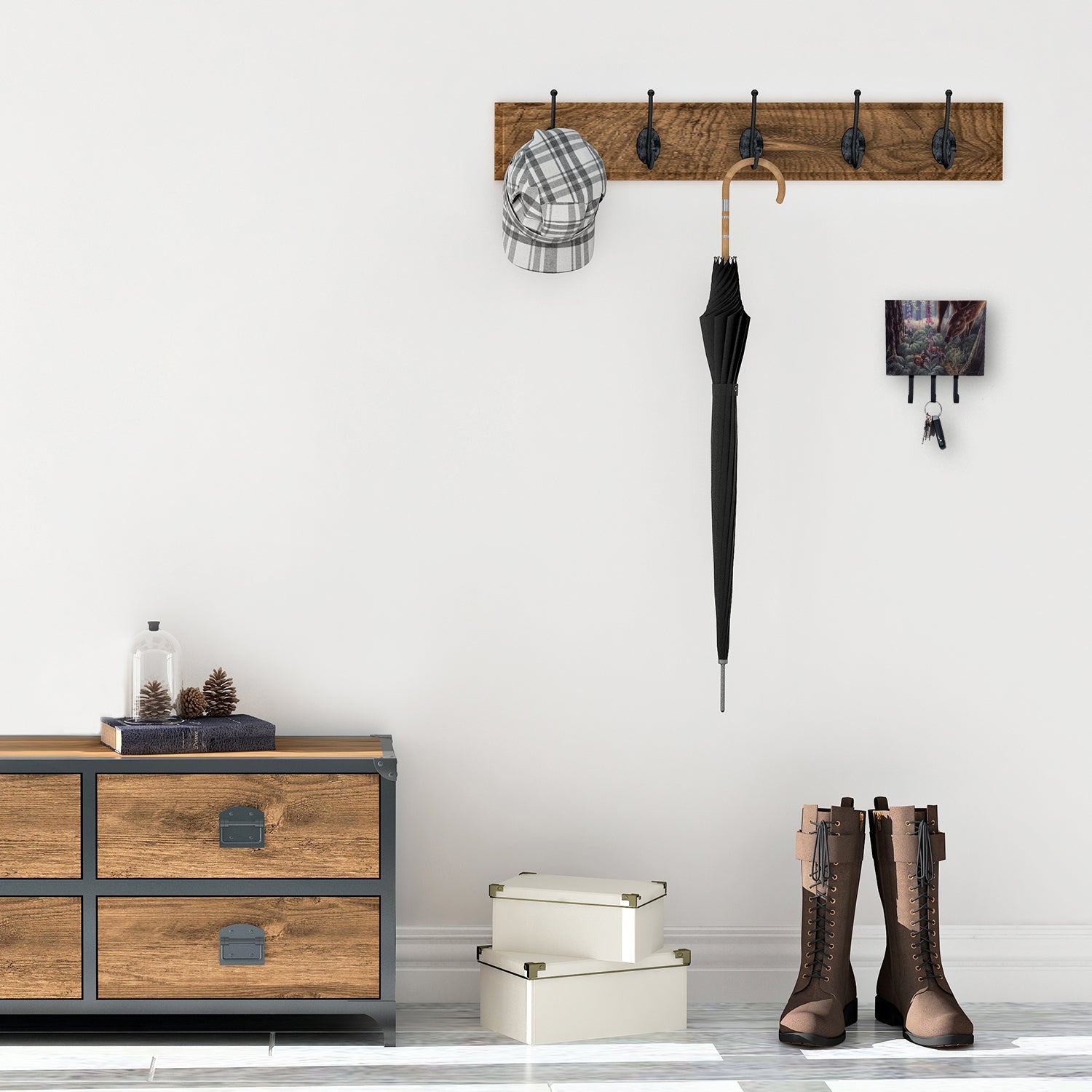 Decorate your space with our Deer artwork on a Wall Hook. Transform your home or office's organization with the Caroline's Treasures Triple Leash or Key Holder. Offering versatility and style, this triple hook holder is perfect for holding keys, leashes, or just about any other small items you need to keep at hand. Crafted with a hardboard tile mounted to a metal rectangle, this holder's structure speaks of durability and reliability. Each hook hangs down about 2.5 inches from the base, providing ample space for hanging your essentials. Despite its robustness, this triple hook holder remains simple to install. It comes with a 1.5-inch long hanger attached to the metal plate, ensuring easy installation with a screw or paneling nail. This holder, measuring 6 x 2 x 9 inches and weighing only 1 lb, is a compact and lightweight solution to your storage needs. Ideal for home or office use, the Caroline's Treasures Triple Leash or Key Holder enhances organization while adding a touch of sophistication to your space.