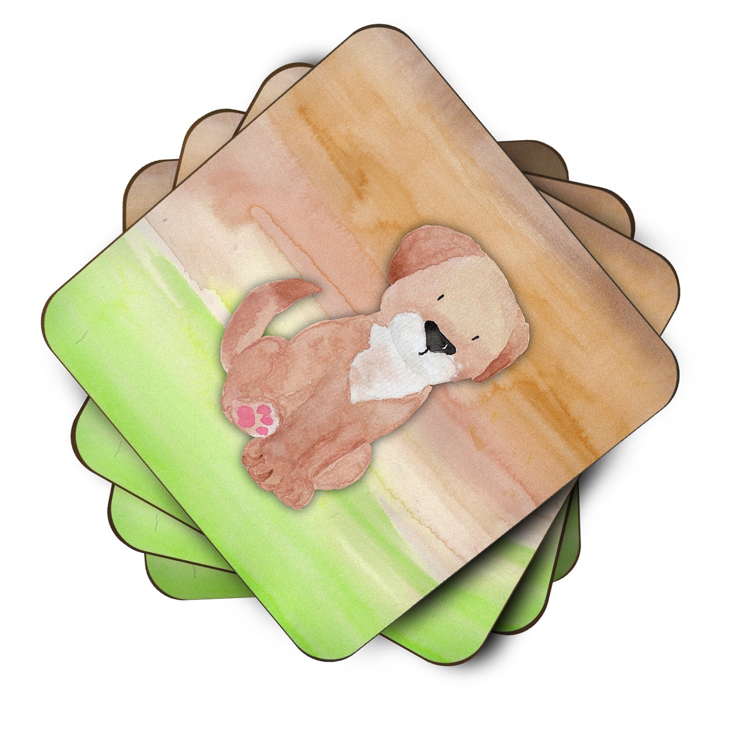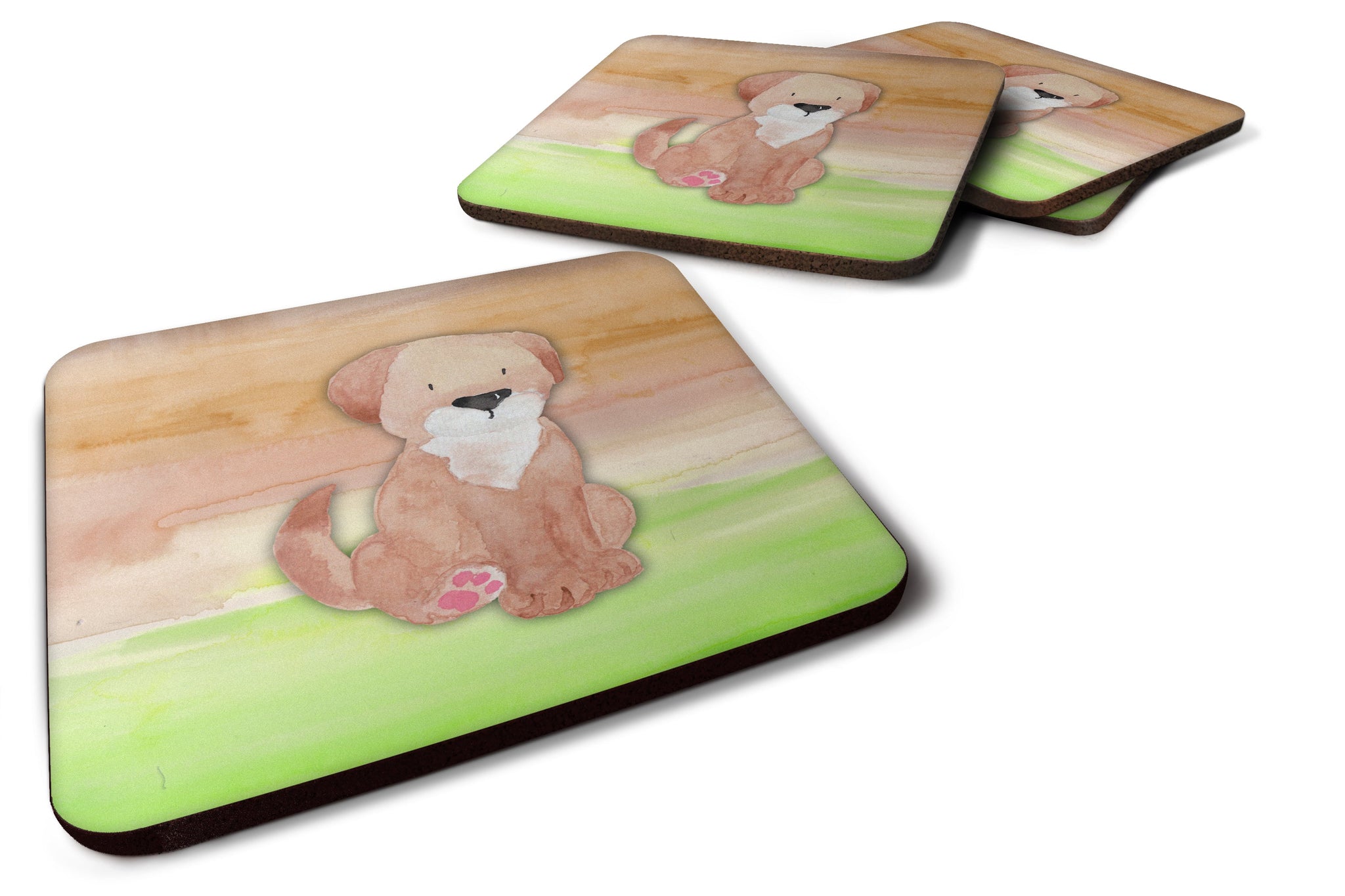 Decorate your space with our Multiple Dogs artwork on a Coaster set. Presenting our Set of 4 Foam Coasters, a stylish and practical addition to your table setting. Each square coaster, measuring 3 1/2 inches by 3 1/2 inches, is perfectly sized to accommodate various drinkware, from coffee mugs to tumblers. These coasters stand out with their full-color artwork, permanently dyed onto the material for a vibrant and fade-resistant finish. They're not just functional, they're a fashionable statement, adding a touch of flair to any gathering or event. Our foam coasters serve a dual purpose - they protect your table from water stains and are perfect for both hot and cold drinks. The material used is similar to that of our high-quality mouse pads, ensuring durability and heat resistance. These coasters are easy to maintain - simply wash them in the top of your dishwasher and lay flat to dry. The design won't come off, ensuring they retain their vivid colors for years. Pair them with one of our insulated coolers or huggers for a cohesive, thoughtful gift set. Enhance your beverage experience with our Set of 4 Foam Coasters.