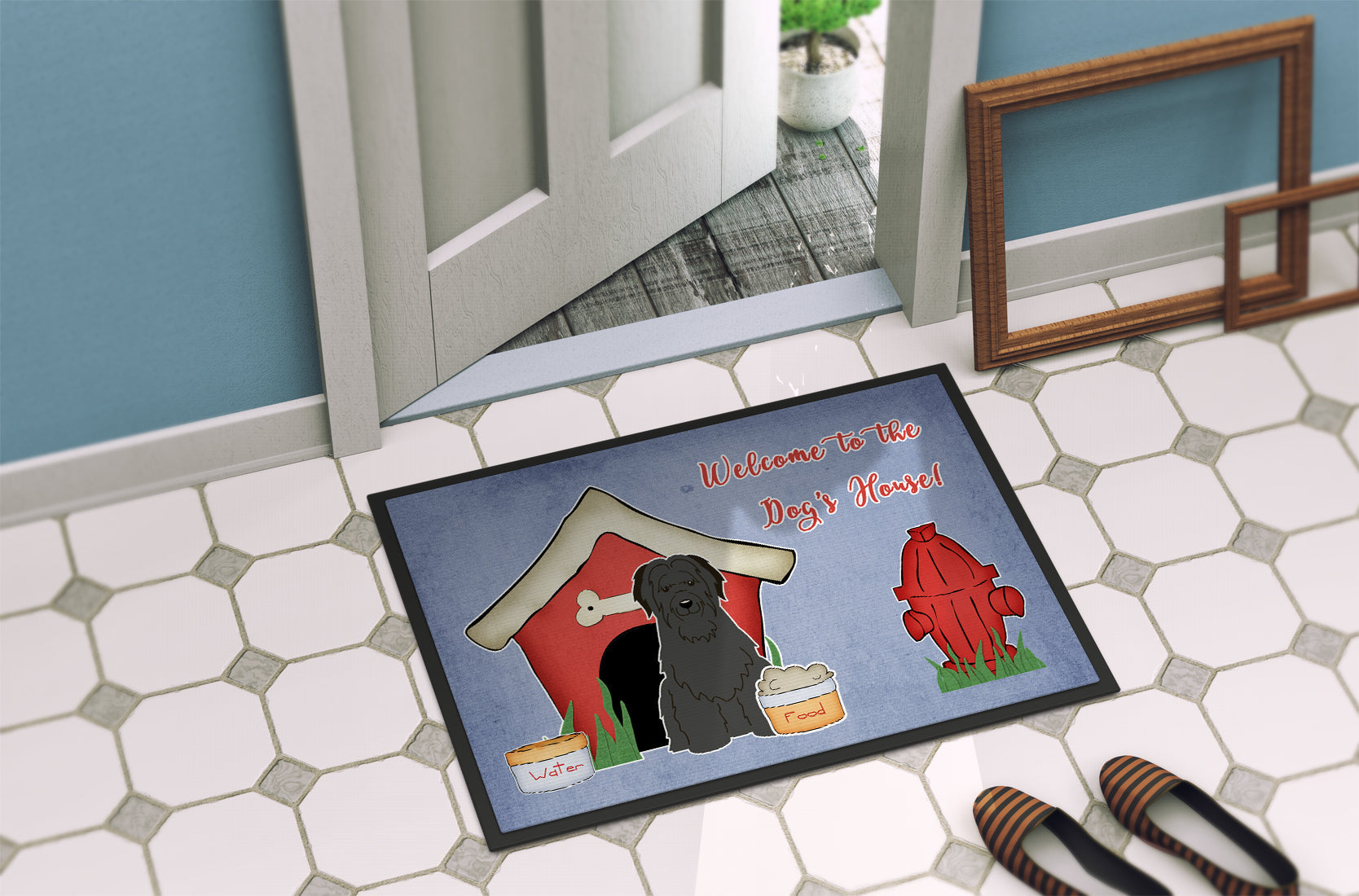 Decorate your space with our Briard artwork on a Doormat. Welcome your guests in style with our Artwork Door Mat, designed to withstand almost any weather condition. This mat, measuring approximately 24 by 36 inches, is held together by durable black binding tape. Its top layer, composed of polyester felt, is dyed with the eye-catching image you see on the mat. A few layers below provide the mat with stability, while its rubber bottom is stamped to help prevent slipping and ensures safety. Our mat works wonderfully as both an indoor or outdoor door mat. For cleaning, simply hose it off with water or use a power washer - no need for any cleaner that produces suds. Avoid scrubbing with a brush, instead, opt for the vacuum on floor setting. Designed manufactured and printed in the USA, this mat is a perfect addition to your porch, outdoor kitchen, entryway, or any indoor space. Its unique design makes it a charming decorative rug that greets your guests and adds a stylish touch to your home decor.