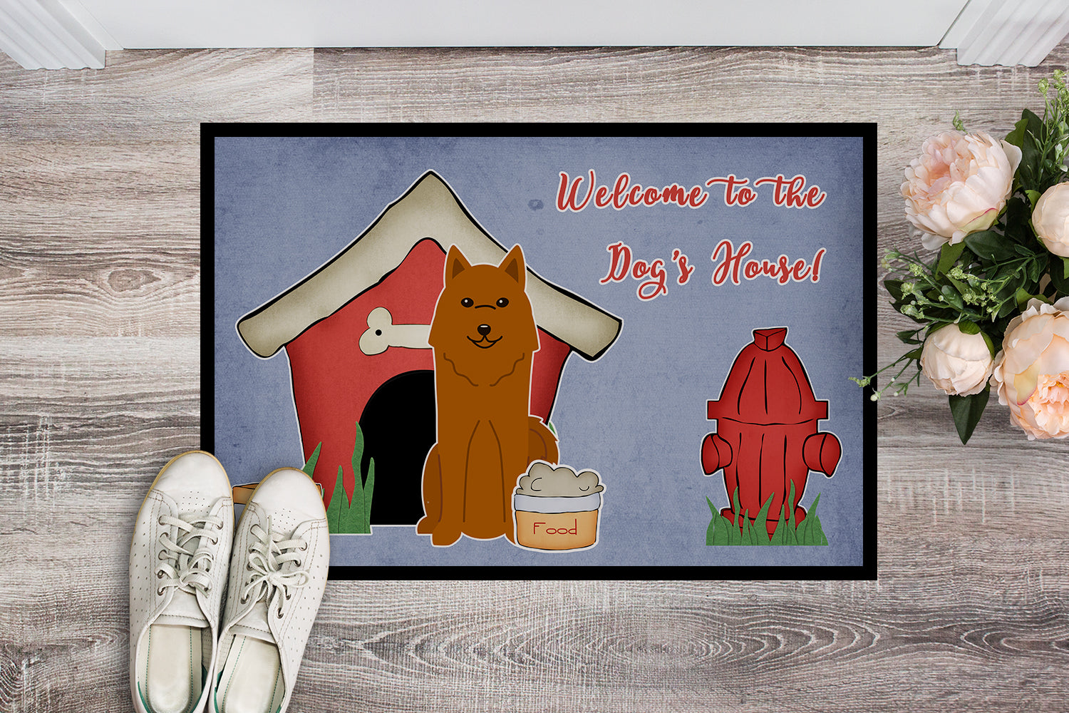 Decorate your space with our Karelian Bear Dog artwork on a Doormat. Welcome your guests in style with our Artwork Door Mat, designed to withstand almost any weather condition. This mat, measuring approximately 24 by 36 inches, is held together by durable black binding tape. Its top layer, composed of polyester felt, is dyed with the eye-catching image you see on the mat. A few layers below provide the mat with stability, while its rubber bottom is stamped to help prevent slipping and ensures safety. Our mat works wonderfully as both an indoor or outdoor door mat. For cleaning, simply hose it off with water or use a power washer - no need for any cleaner that produces suds. Avoid scrubbing with a brush, instead, opt for the vacuum on floor setting. Designed manufactured and printed in the USA, this mat is a perfect addition to your porch, outdoor kitchen, entryway, or any indoor space. Its unique design makes it a charming decorative rug that greets your guests and adds a stylish touch to your home decor.