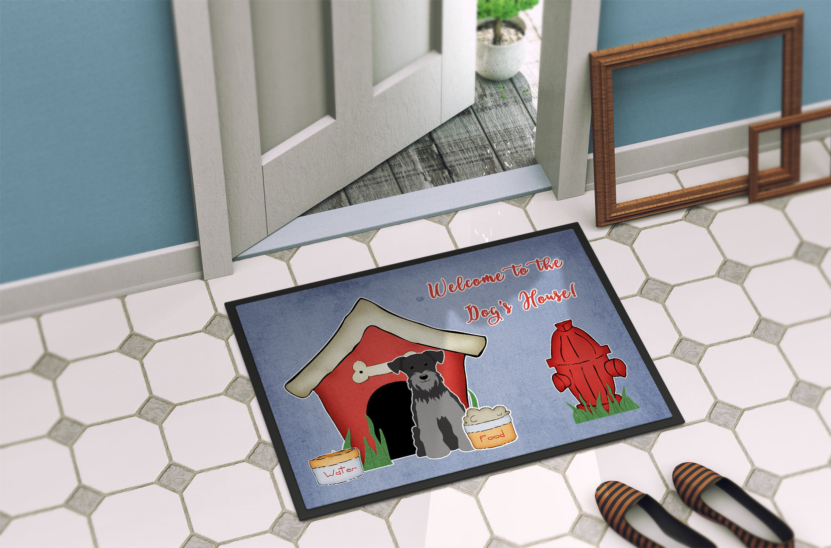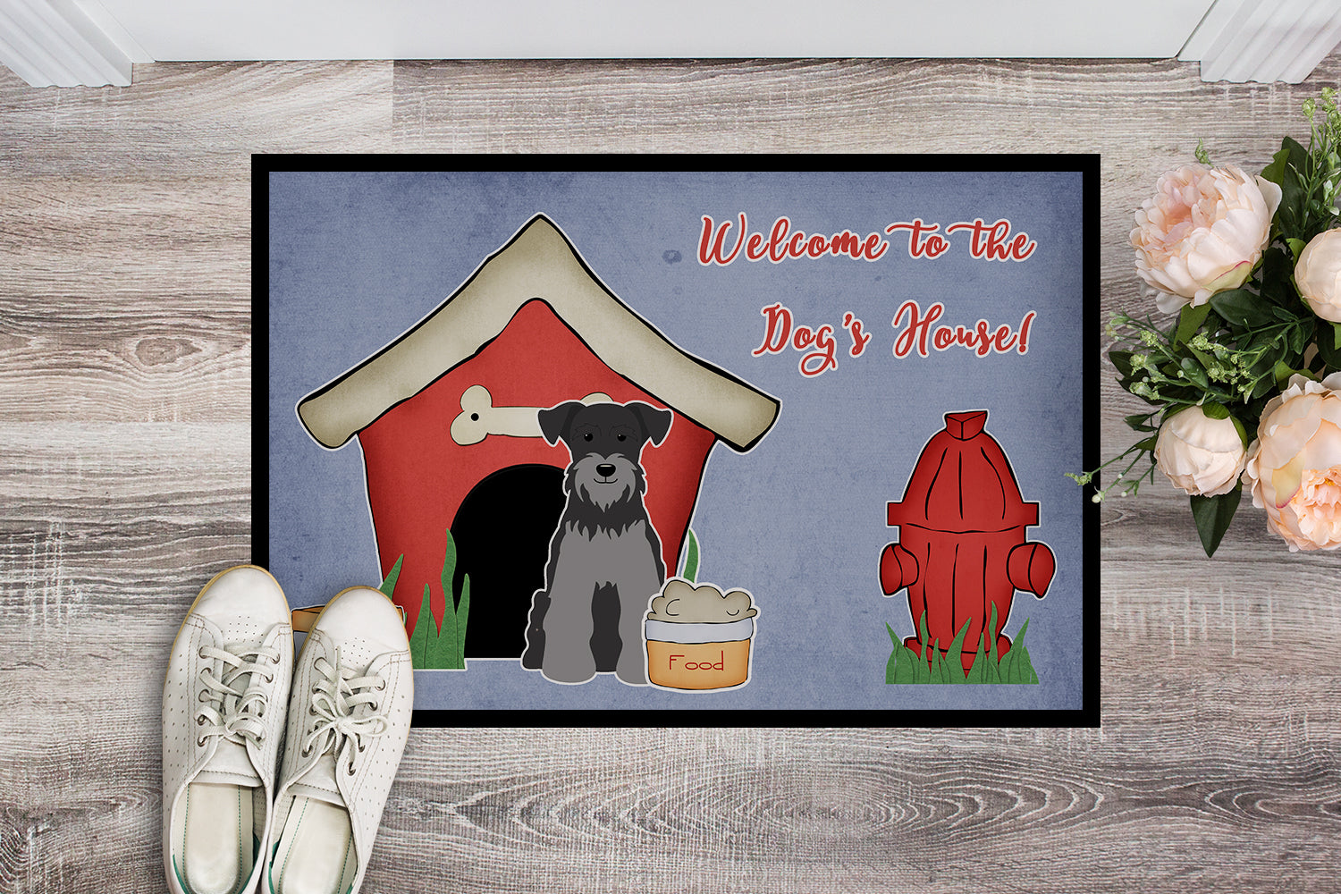 Dog House Collection Miniature Schanuzer Black Silver Doormat - 24x36 Decorative Floor Mat – Indoor/Outdoor Rug with Artistic Flair BB2806JMAT