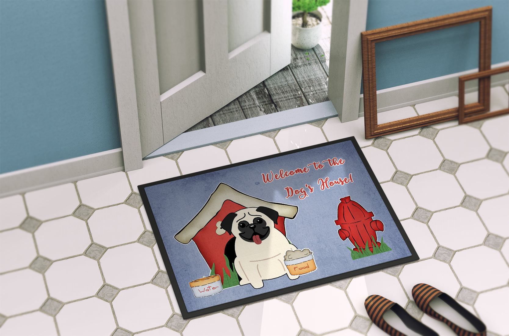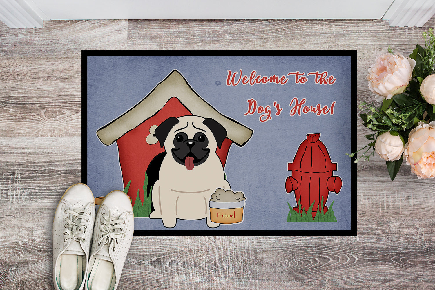 Dog House Collection Pug Cream Doormat - 24x36 Decorative Floor Mat – Indoor/Outdoor Rug with Artistic Flair BB2758JMAT