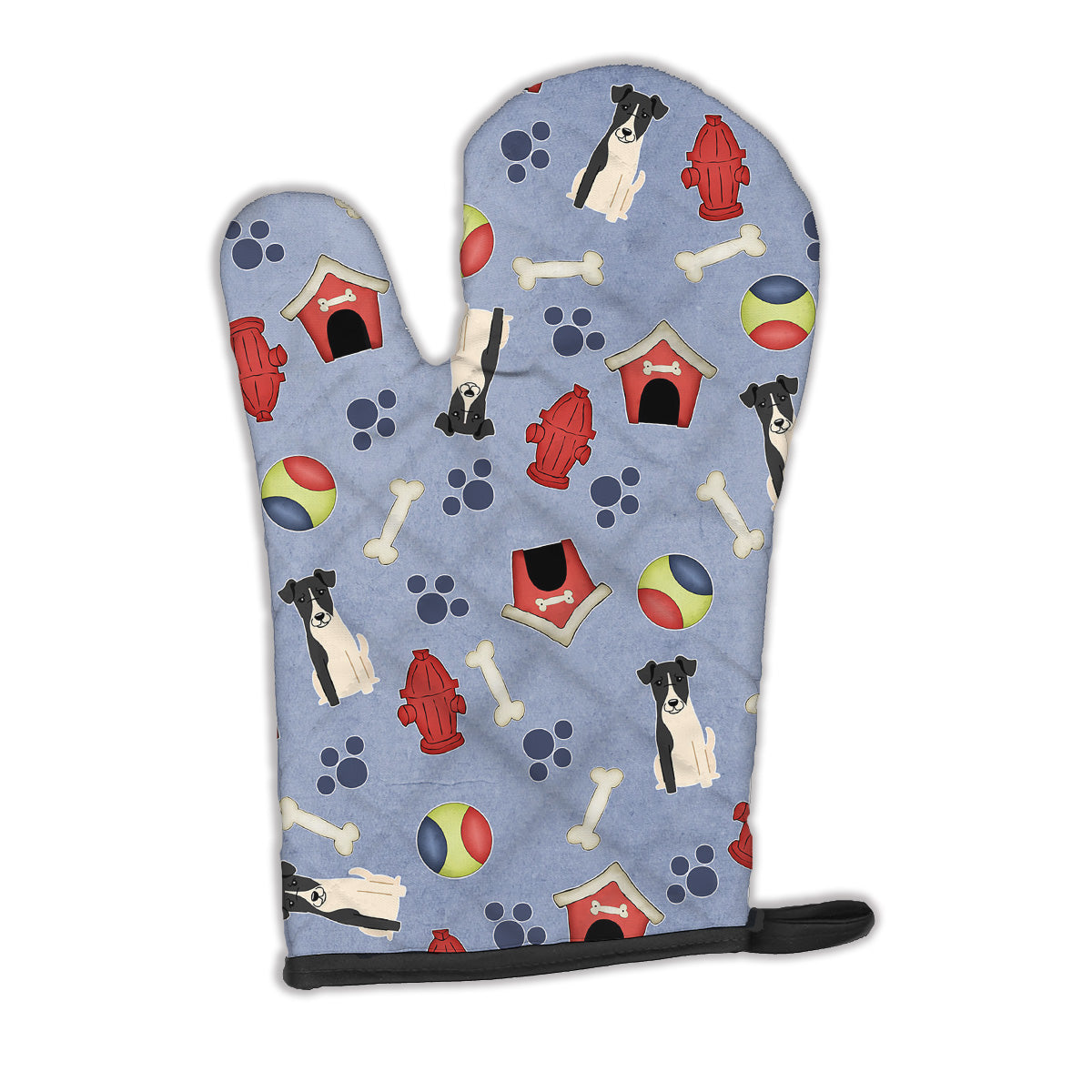Decorate your space with our Fox Terrier artwork on a Oven Mitt. Presenting our Large Right Hand Thick Heat Resistant Oven Mitt, an indispensable tool for any culinary enthusiast. This mitt boasts layers of quilted protection on both sides, providing outstanding resistance against extreme heat. Embellished with beautifully printed artwork, it adds an extra dash of charm to your kitchen decor. At about 12 inches long and 8 1/2 inches wide, this oven mitt offers a generous fit, accommodating a diverse range of hand sizes. Its design is enhanced by a sleek Black bias tape trim, finished with a convenient hoop for easy hanging. Fresh out of the packaging, the quilting process may give the mitt a stiff feel, but rest assured, it will soften with use and washing. Our mitt is crafted with a unique center fabric, Insul-Bright, a composite material made from polyester fibers, needle-punched through a nonwoven substrate and a reflective metallized film. This smart material resists both conduction and radiant energy, reflecting heat back to its source, all while remaining breathable. Our oven mitt is machine washable and safe for tumble drying. It's a perfect gift for your favorite Chef, BBQ enthusiast, or just a little treat for yourself! Experience safety, style, and convenience rolled into one with this exceptional oven mitt.