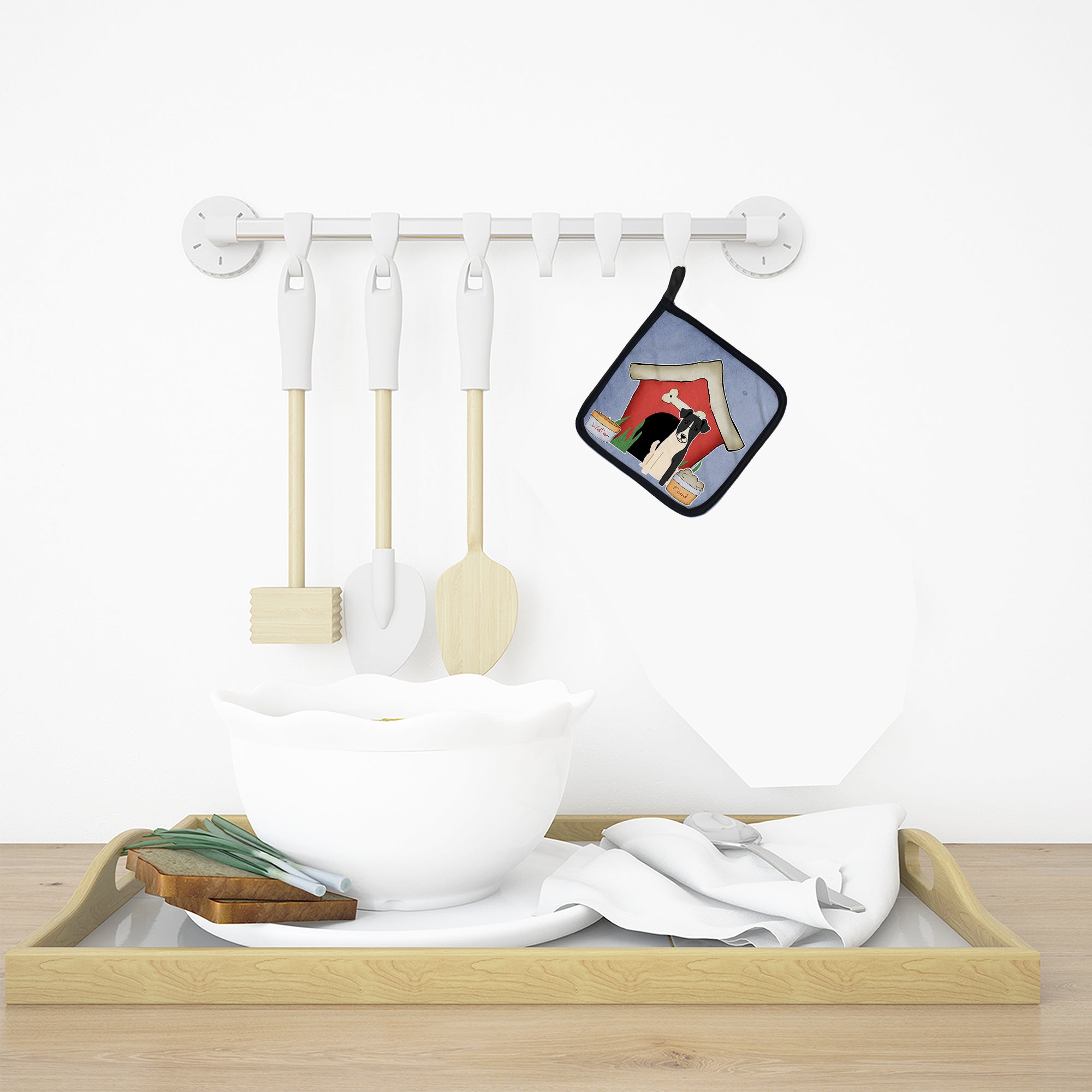 Decorate your space with our Fox Terrier artwork on a Pair of Pot Holders. A Pair of Pot Holders to match your kitchen decor. Made in the USA these are thick and functional. Full color artwork decorates the front polyester fabric of the hot pad and accented by a black trim. Use these at as a trivet for your Thanksgiving or Christmas tablescape. Filled with insulated fabric and quilted for durability. These colorful pot holders will make a great gift for your favorite home cook or executive chef. Each pot holder measures approximately 7 1/2 inches by 7 1/2 inches. A hanging tab is included.