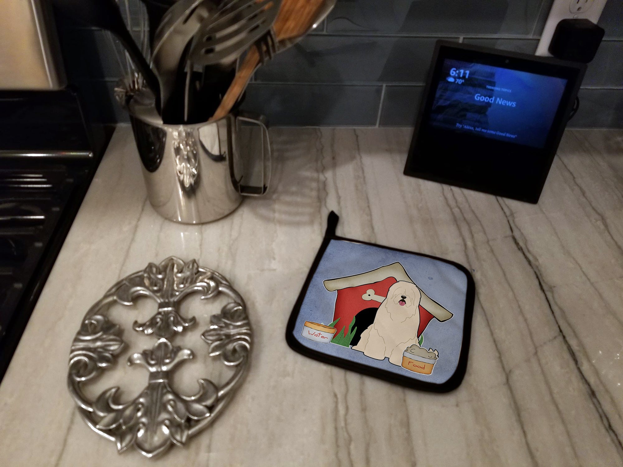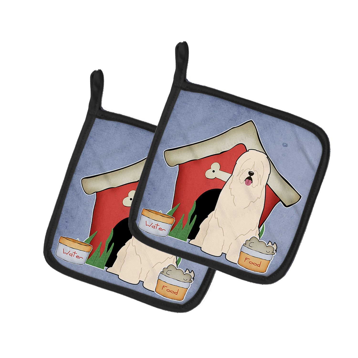 Decorate your space with our South Russian Sheepdog artwork on a Pair of Pot Holders. A Pair of Pot Holders to match your kitchen decor. Made in the USA these are thick and functional. Full color artwork decorates the front polyester fabric of the hot pad and accented by a black trim. Use these at as a trivet for your Thanksgiving or Christmas tablescape. Filled with insulated fabric and quilted for durability. These colorful pot holders will make a great gift for your favorite home cook or executive chef. Each pot holder measures approximately 7 1/2 inches by 7 1/2 inches. A hanging tab is included.
