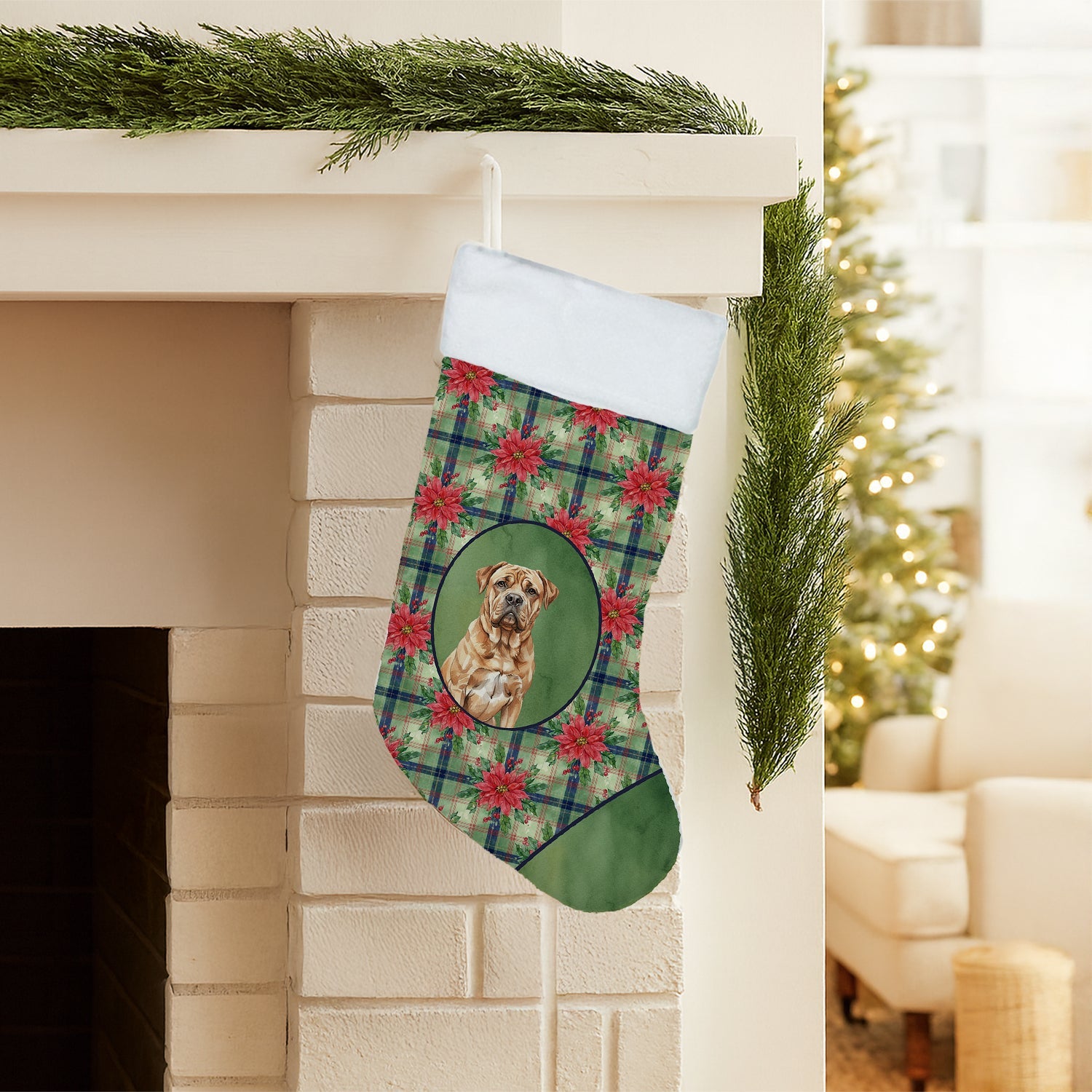 Holiday Stocking featuring breed specific Dogue de Bordeaux artwork. Celebrate Christmas with this Christmas Stocking. Bring holiday warmth to your home with a Caroline’s Treasures Christmas Stocking. Proudly designed, printed, and sewn in the USA. Made from premium 100% polyester suede, this luxurious holiday stocking combines softness with durability for years of festive joy. Measuring approximately 18 inches tall by 11 inches wide, it offers plenty of room for Santa’s surprises and holiday treats. Each stocking features vibrant full-color artwork printed on both sides, ensuring your holiday design shines from every angle - perfect for mantels, shelves, or stocking hangers. The sturdy fabric loop is crafted from matching suede for a secure, stylish display. When the festivities end, simply machine wash, lay flat, or hang to dry and it’s ready for next year’s celebrations. Add a touch of handmade charm and American craftsmanship to your Christmas decor. Perfect for families, pet lovers, and holiday hosts who want a coordinated, made-in-USA look.
