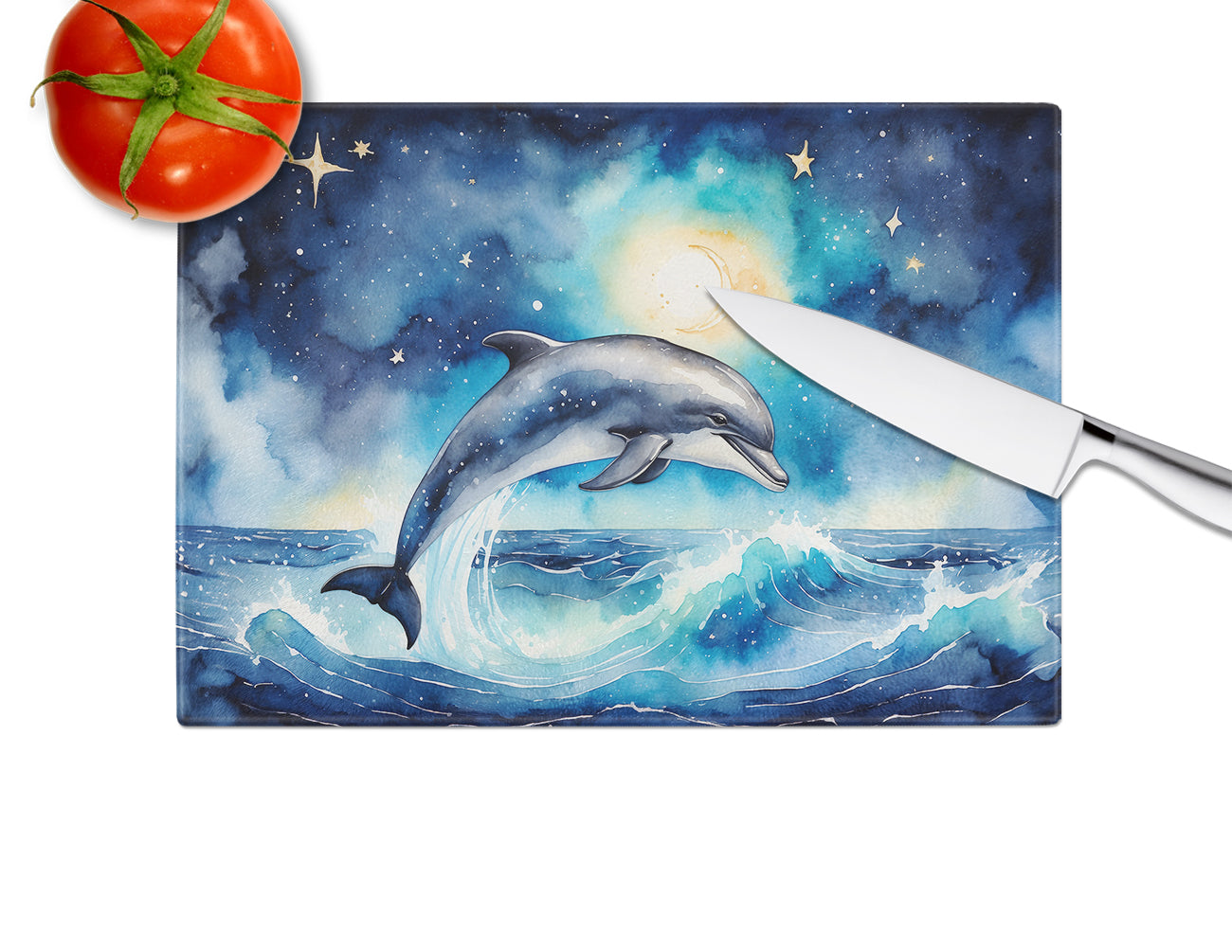 Dolphin in a Starry Sea Glass Cutting Boards – Durable, Decorative Kitchen Art