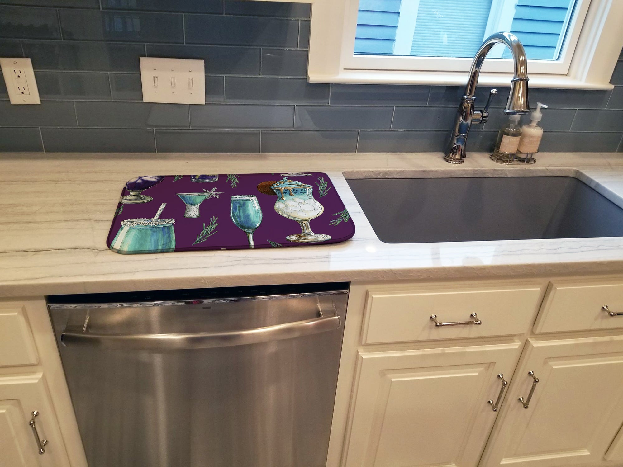 Say goodbye to messy countertops and soggy dish towels with our innovative dish drying mat. Our high-quality dish drying pad is designed to keep your countertops dry while offering a stylish and efficient solution. Whether you're air drying dishes, glasses, stemware, silverware, pots, pans, bottles, or even fruits and vegetables, our dish mat is the perfect choice. The 14 inches x 22 inches size fits most counters and dish drying racks, and the non-slip design ensures stability. Made with water-absorbent polyester and a polyurethane foam insert, our dish drying mat is not only functional but also durable. It's machine washable and printed in the USA for long-lasting use. The beautiful artwork adds flair to your kitchen decor, making it a perfect housewarming gift or present for any occasion. Upgrade your kitchen experience with our absorbent and versatile dish drying mat.