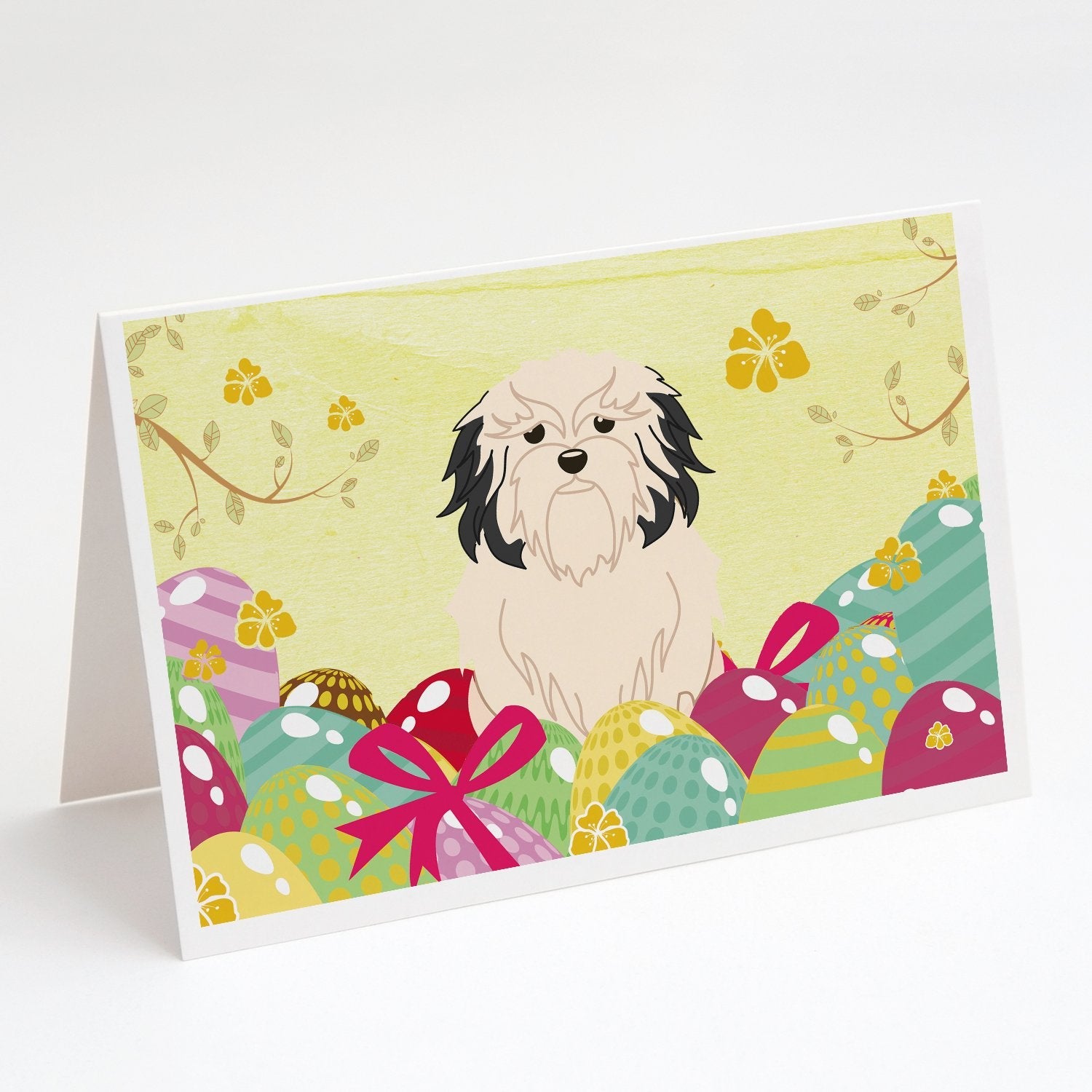 Decorate your space with our Easter Lowchen artwork on a . Celebrate special moments with Caroline's Treasures Printed Greeting Card Pack. This pack includes eight beautifully folded 5x7 cards, accompanied by eight matching white envelopes. With blank interiors, these cards provide ample space for your personalized messages and heartfelt holiday greetings. Each card features captivating full-color artwork, meticulously printed in our facility on high-quality 80 lb cover stock or 216 GSM. The super smooth finish of the white cards enhances the visual impact of the artwork, creating a truly stunning presentation. Designed by our talented in-house artists or licensed artists, the artwork on these cards showcases their creativity and attention to detail. From vibrant illustrations to captivating designs, each card tells its own unique story. Whether it's for birthdays, anniversaries, holidays, or any special occasion, Caroline's Treasures Greeting Card Pack is the perfect way to convey your heartfelt sentiments. Share joy, love, and warm wishes with these exquisite cards and make every moment unforgettable.