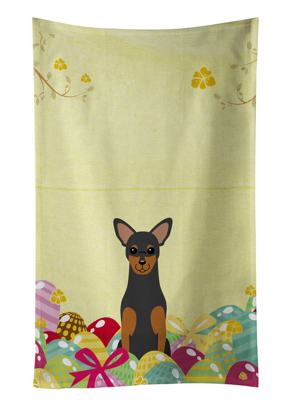 Decorate your space with our Easter Manchester Terrier artwork on a Kitchen Towel. Experience the perfect blend of aesthetic appeal and functional excellence with our Plush Velour Kitchen Towels. These are not your ordinary decorative kitchen towels that gather dust. Instead, they are designed to be as practical as they are stylish. The front layer of our towel is constructed from a minky plush polyester, known for its durability and color retention. Unlike conventional kitchen towels, the artwork on our towels is dyed directly into the fabric, ensuring vibrant colors that last. Polish your glassware to a brilliant sparkle using the plush front side of the towel. Flip to the back, crafted from 100% cotton terry loop, to exploit its exceptional absorbency for drying dishes or wiping down counters. Our kitchen towels redefine the concept of functional art, offering lasting quality that maintains the towel's shape over time. Measuring 15 inches by 25 inches and weighing 2.3 lbs per dozen, these towels deliver an overwhelming sensory experience with their soft, plush, and smooth texture. The edges are meticulously finished with binding, enhancing their durability and visual appeal. For your convenience, these towels are machine washable and can be dried on low heat. After the first wash, the top fabric becomes even softer and fluffier, eliminating the need for ironing. Treat your kitchen to the luxury and functionality it deserves with our plush velour kitchen towels.